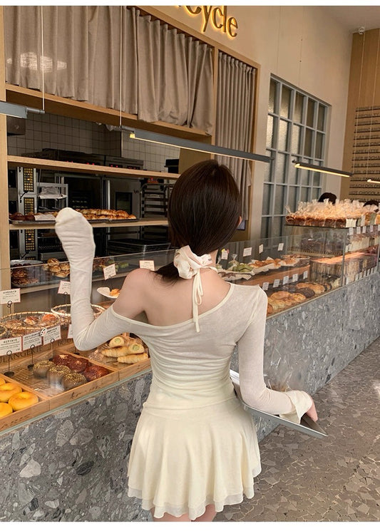 25Sep. 香霧白茶純欲掛脖上衣短裙3件套