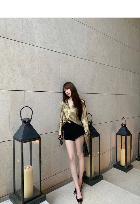 Apr. 落落白月 高奢氣質繫腰交錯上衣半身裙套裝 沙駝色