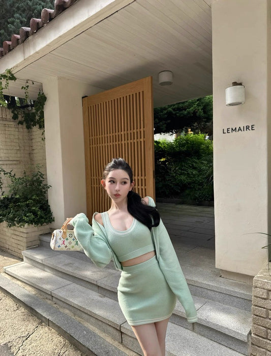 25Nov. 扣動心扉縷空設計感純慾短裙針織套裝 燕麥色