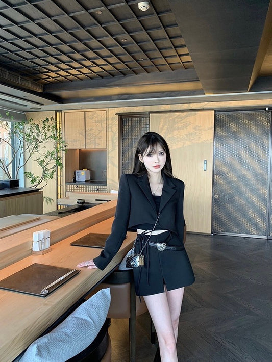 Oct. 經典簡約剪裁 短版西裝外套 修身西裝短褲套裝 黑色