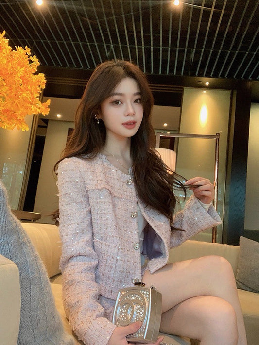 25Oct. Chic紫丁香粗呢外套小香套裝