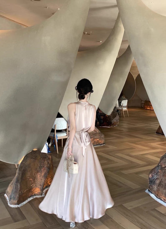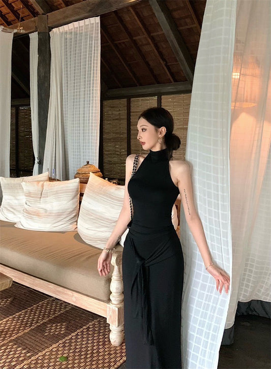 Apr. 清冷高雅簡約純色削肩背心 綁帶半身裙套裝 黑