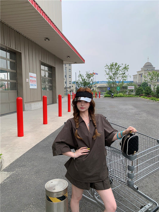Jun. 街頭素描極簡淡人系列row襯衫上衣 短褲 咖色
