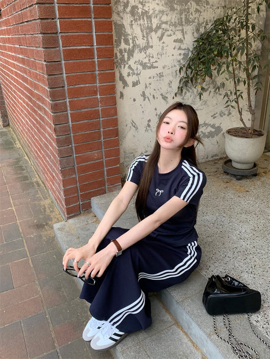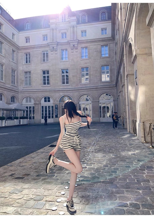 25Aug. 法香特殊織機紡藝條紋抹胸短褲套裝