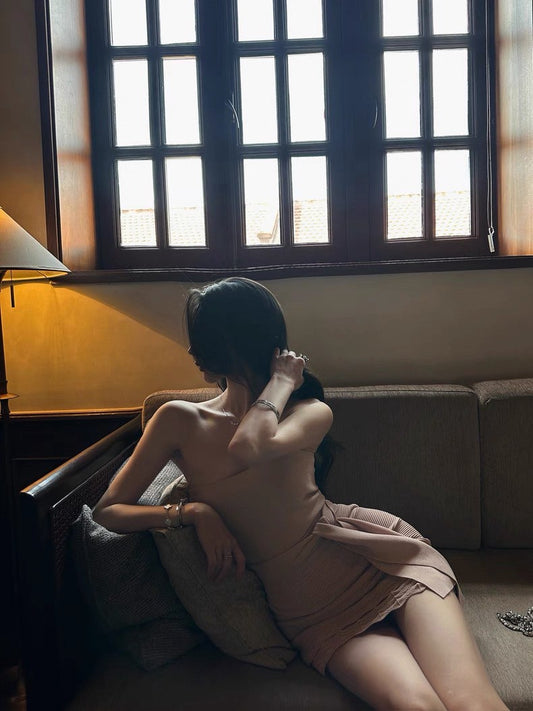 25Aug. 溫香晚玉 絕頂版型抹胸針織套裝 粉