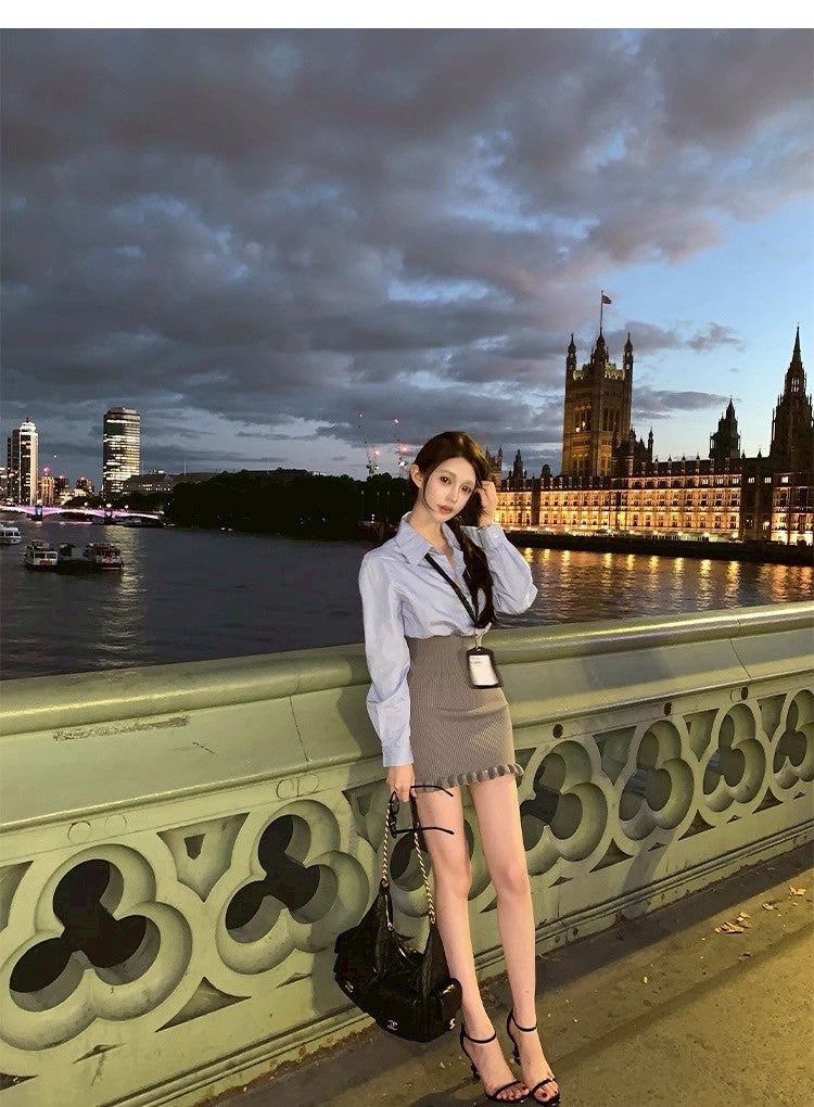 25Oct. 佛羅詠歌 純慾秘書感異材質拼接裙