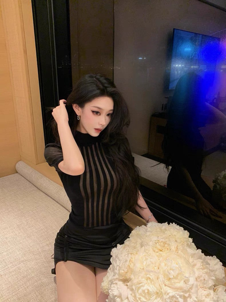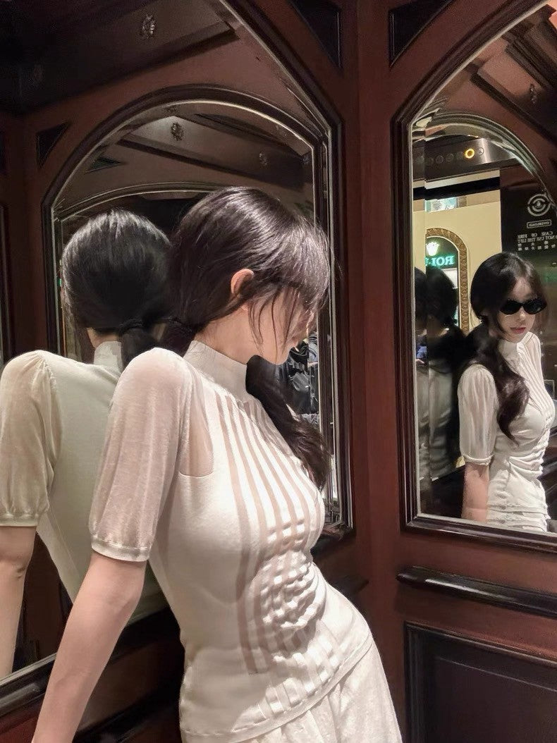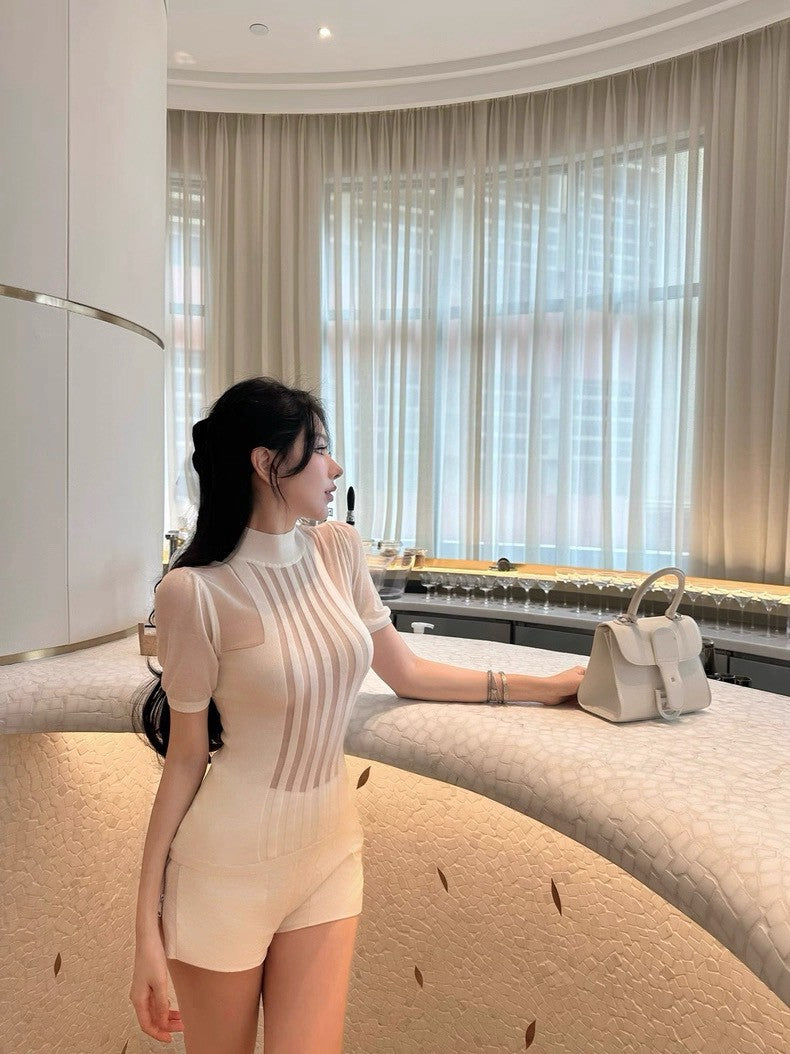 25Aug. 夢幻Franc*高奢時尚豎條感上衣 白/黑