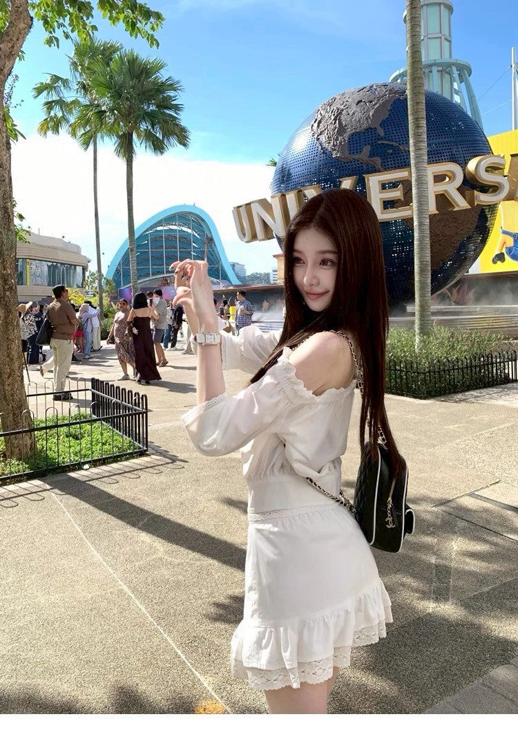 25Aug. 天使之吻初戀白色荷葉一字領套裝