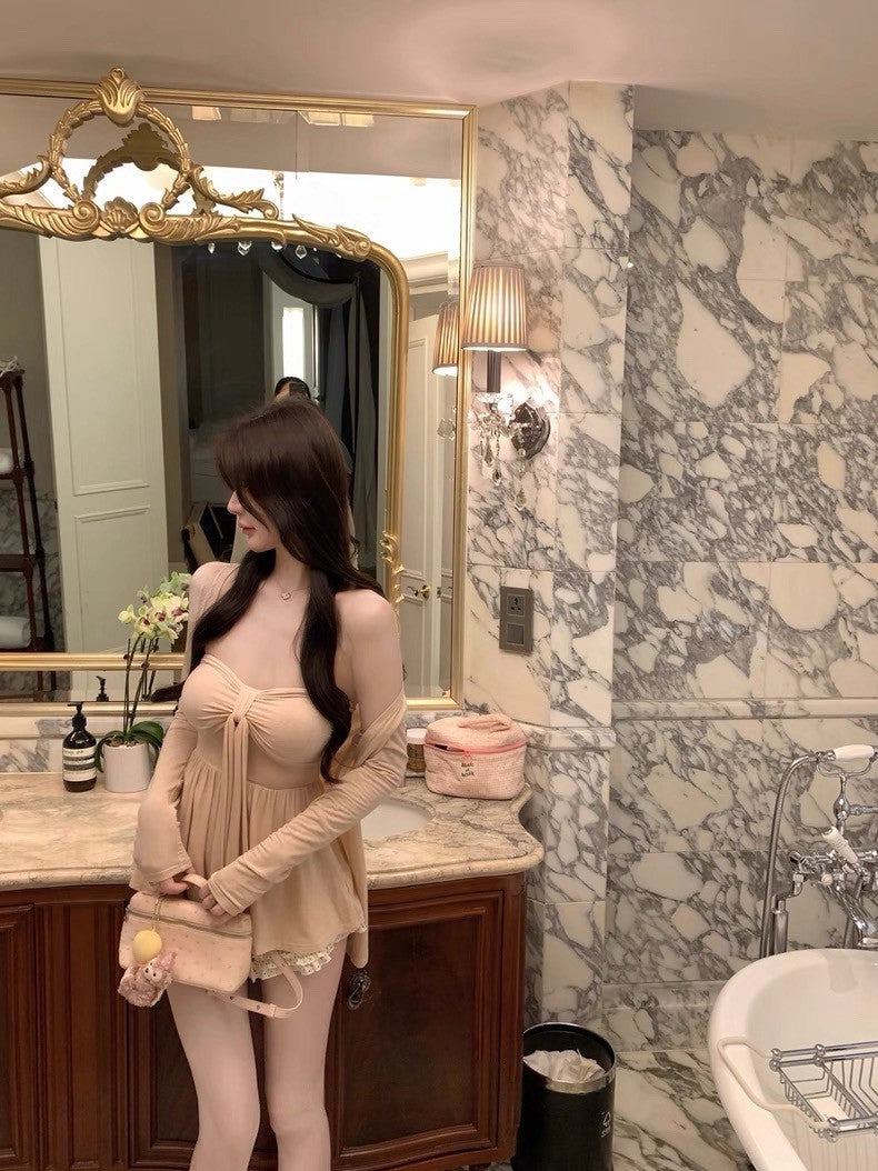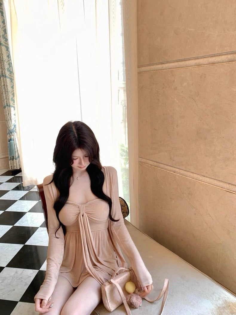 25Aug. 慵懶姐系 莫代爾抹胸外套2件組 粉