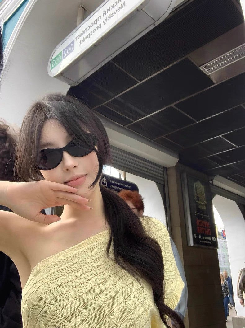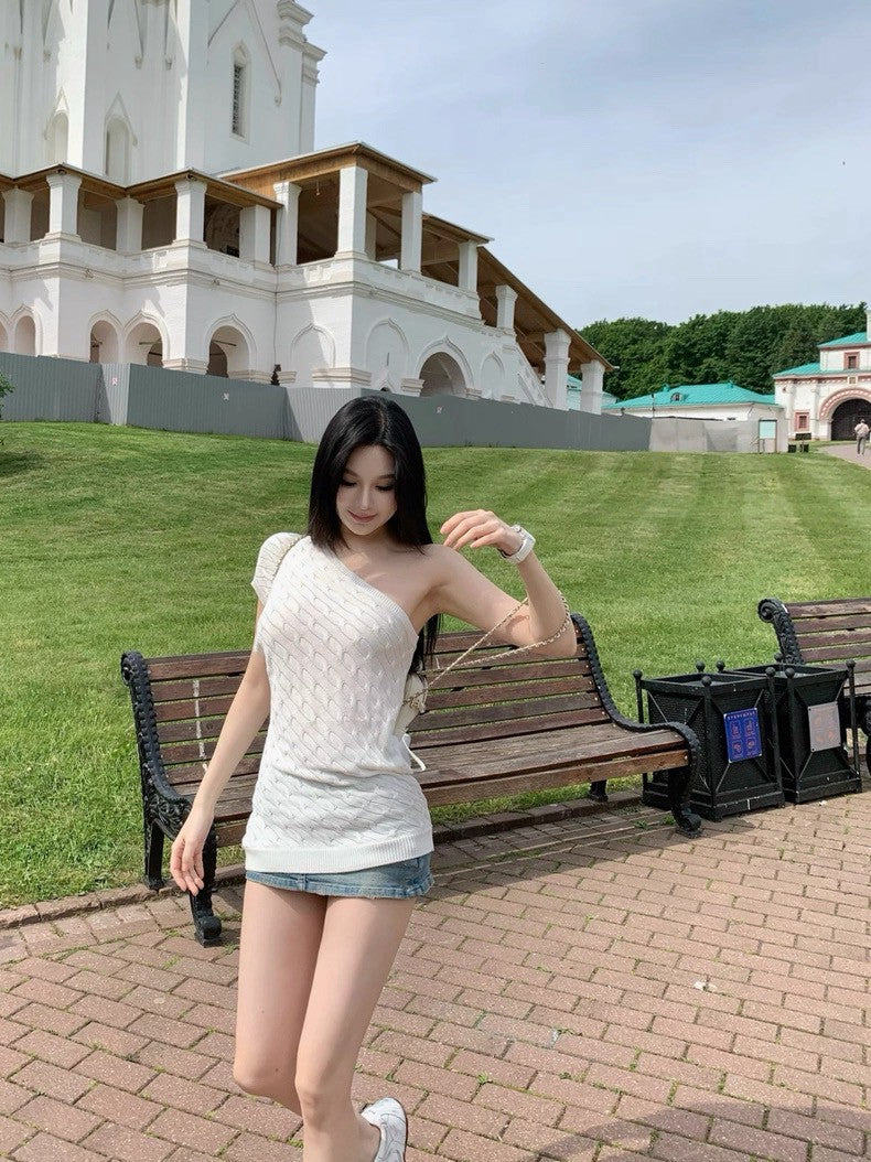25Aug. 拉夫vintage勞倫單肩針織上衣 白/黃