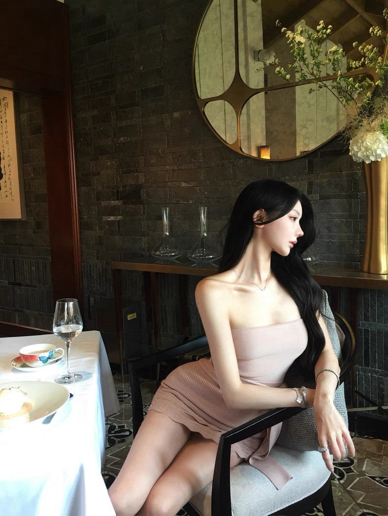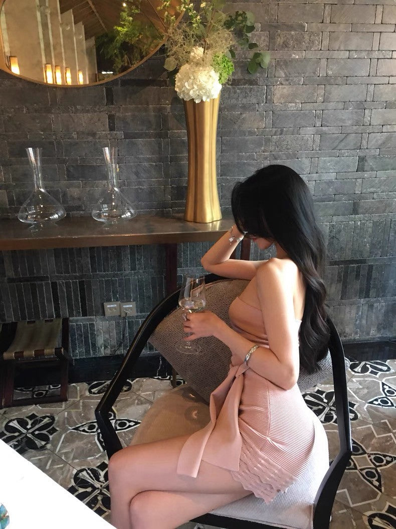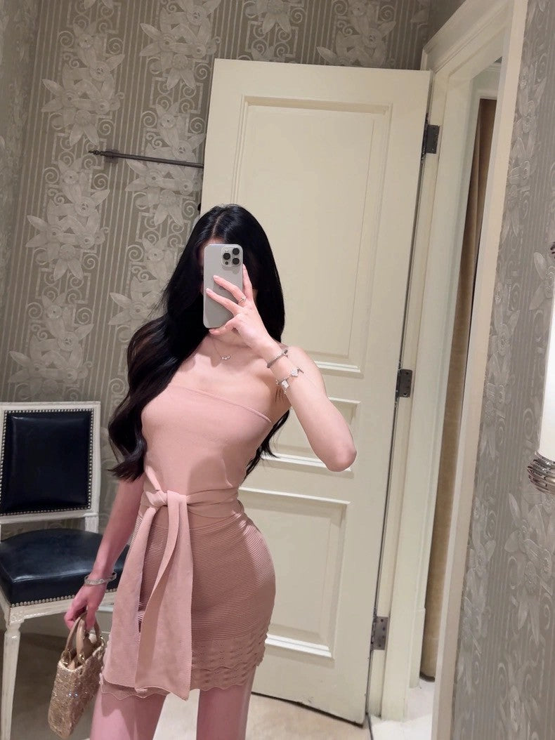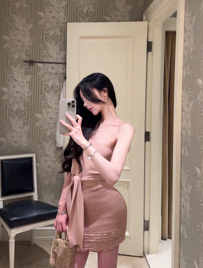 25Aug. 溫香晚玉 絕頂版型抹胸針織套裝 粉