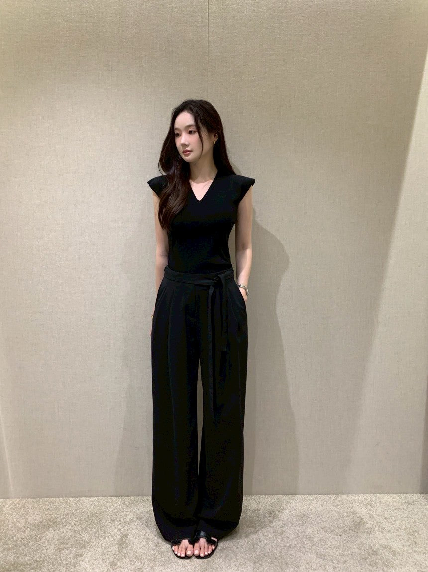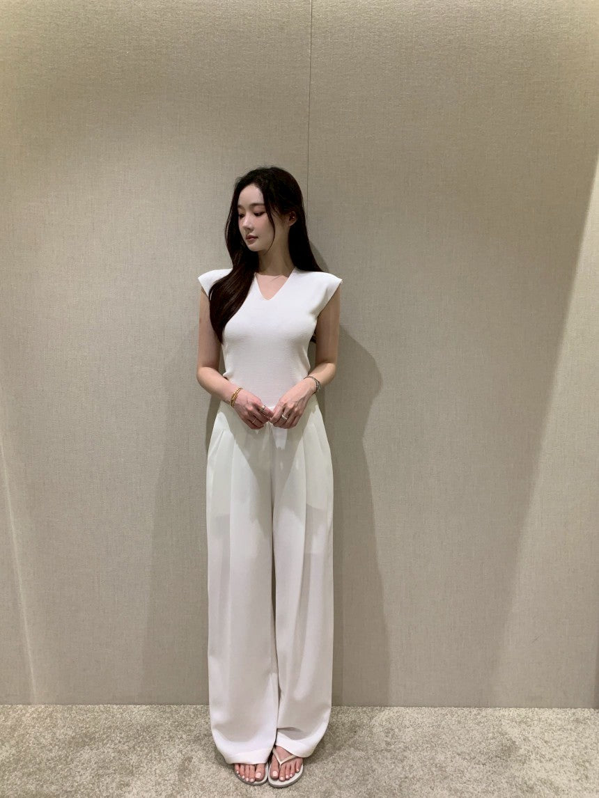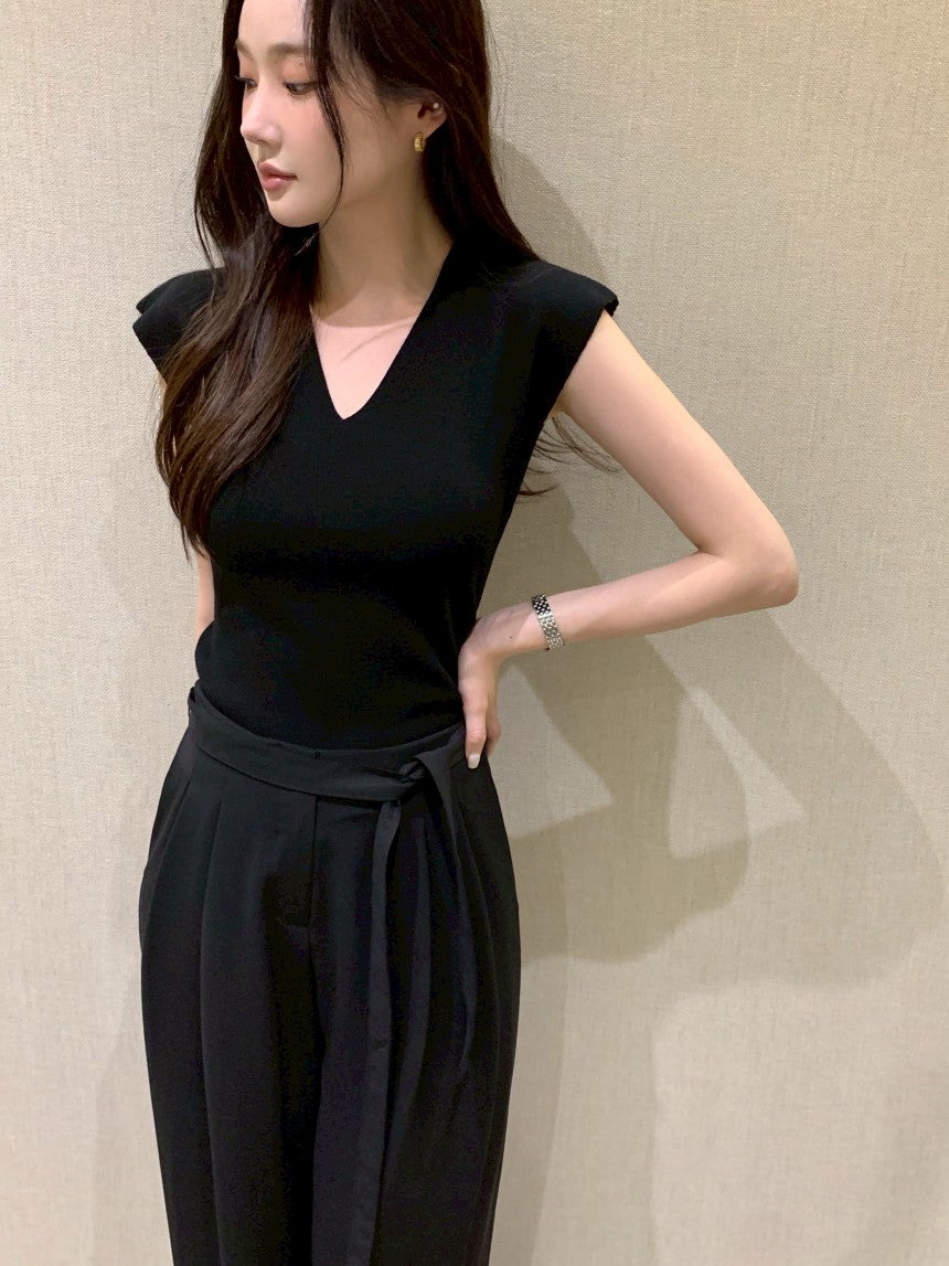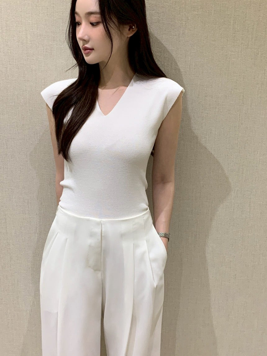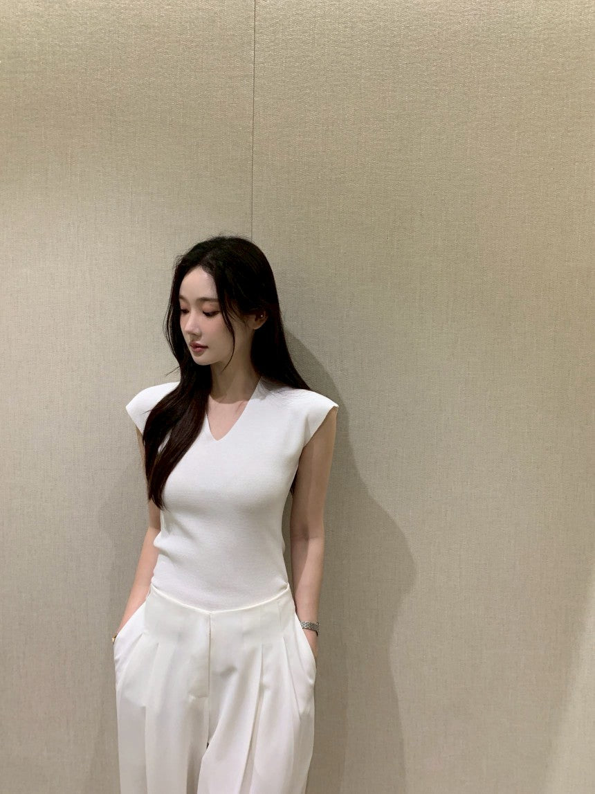 25Aug. 無修邊落肩V領針織上衣 米/黑