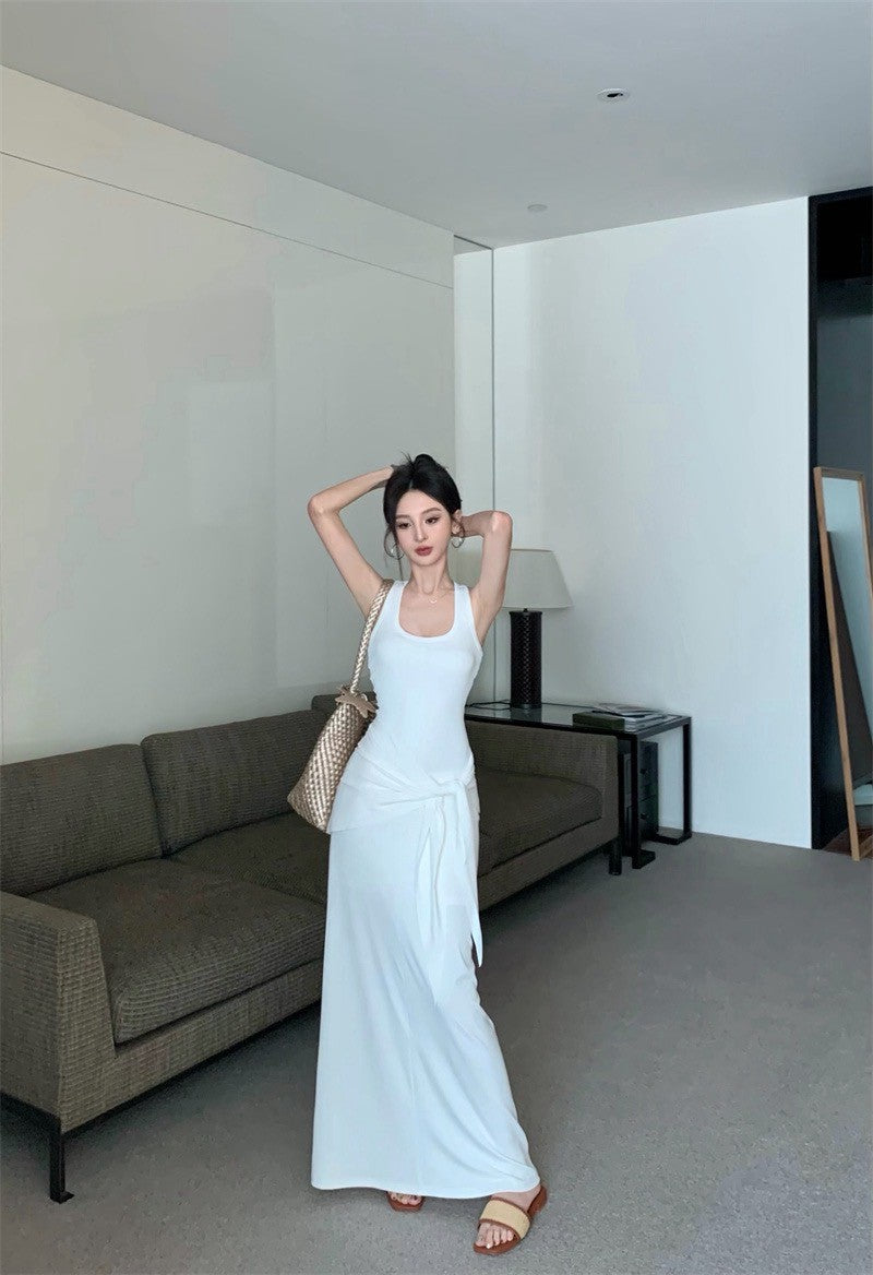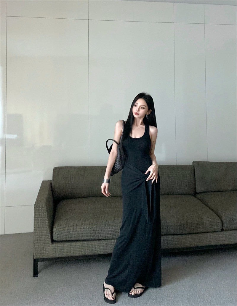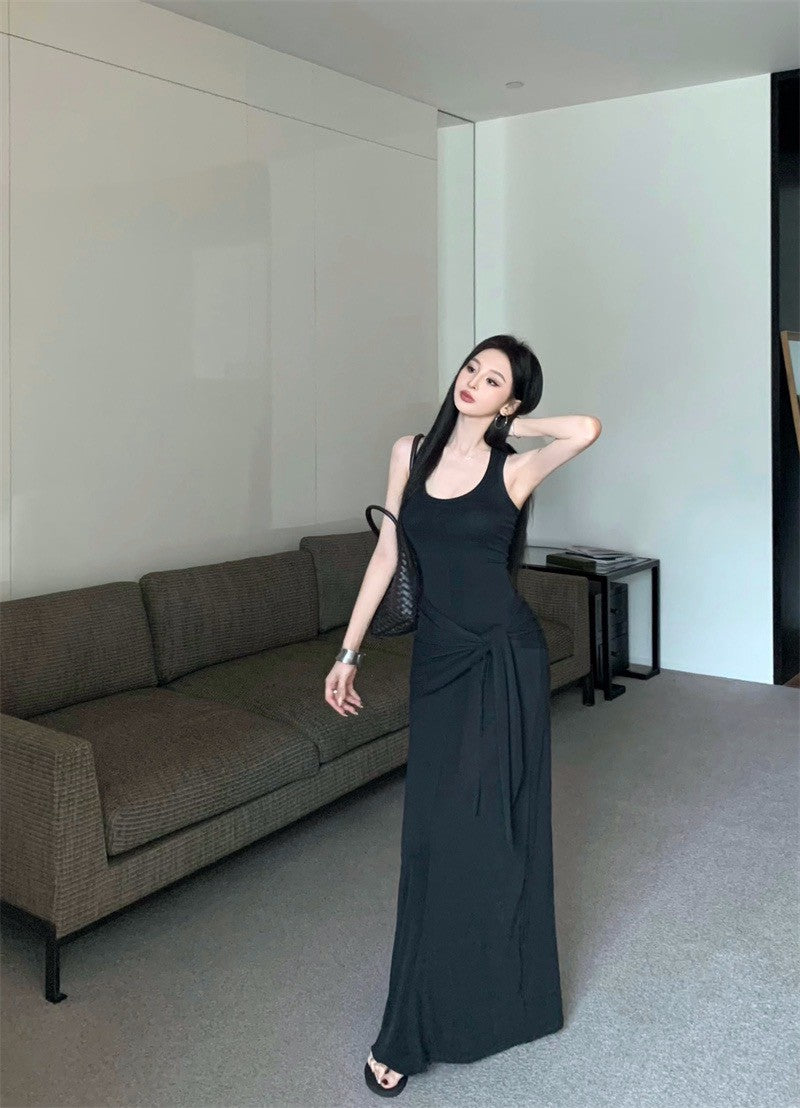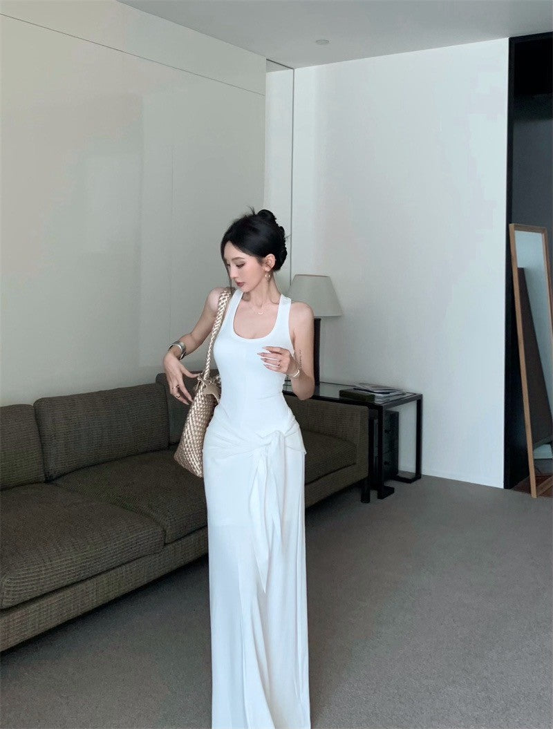 25Aug. 遮小腹瘦瘦工字背心裙(繫帶另附)白/黑