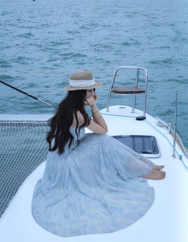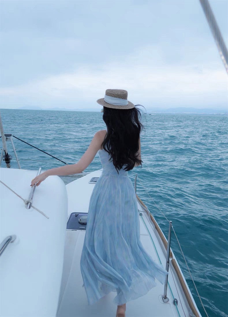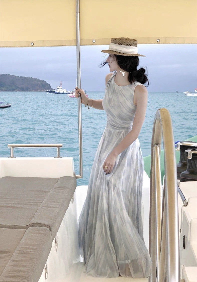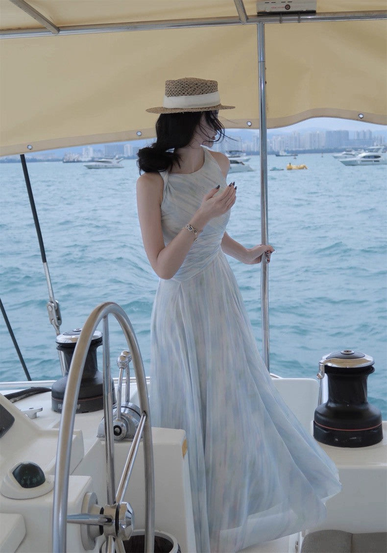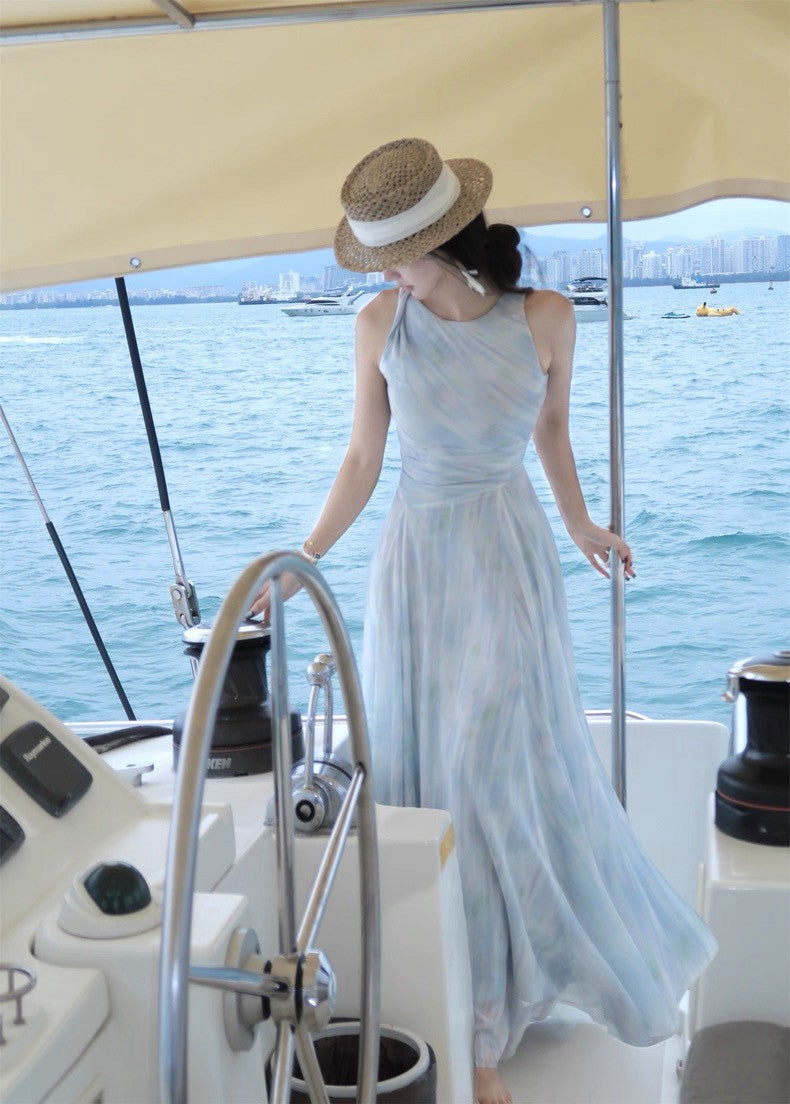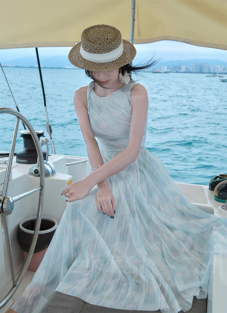 25Aug. 「雙共生」摩登情人復古扭結收腰裙擺連身裙 水波藍