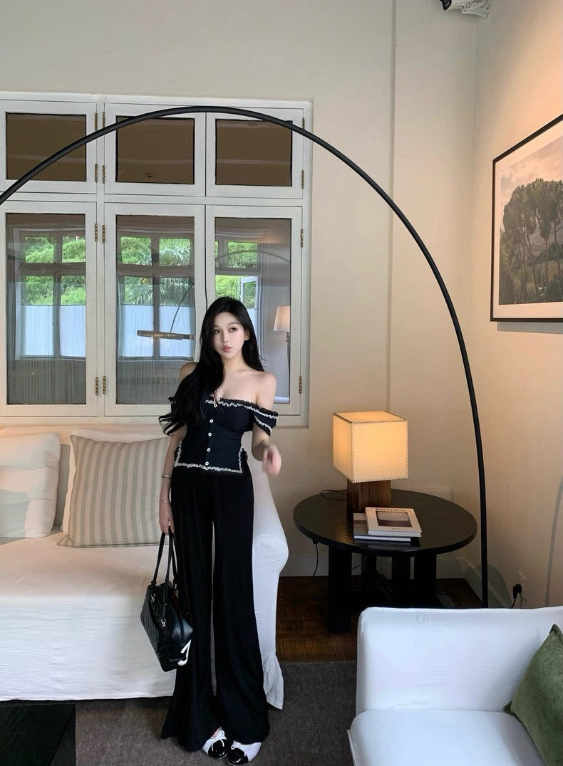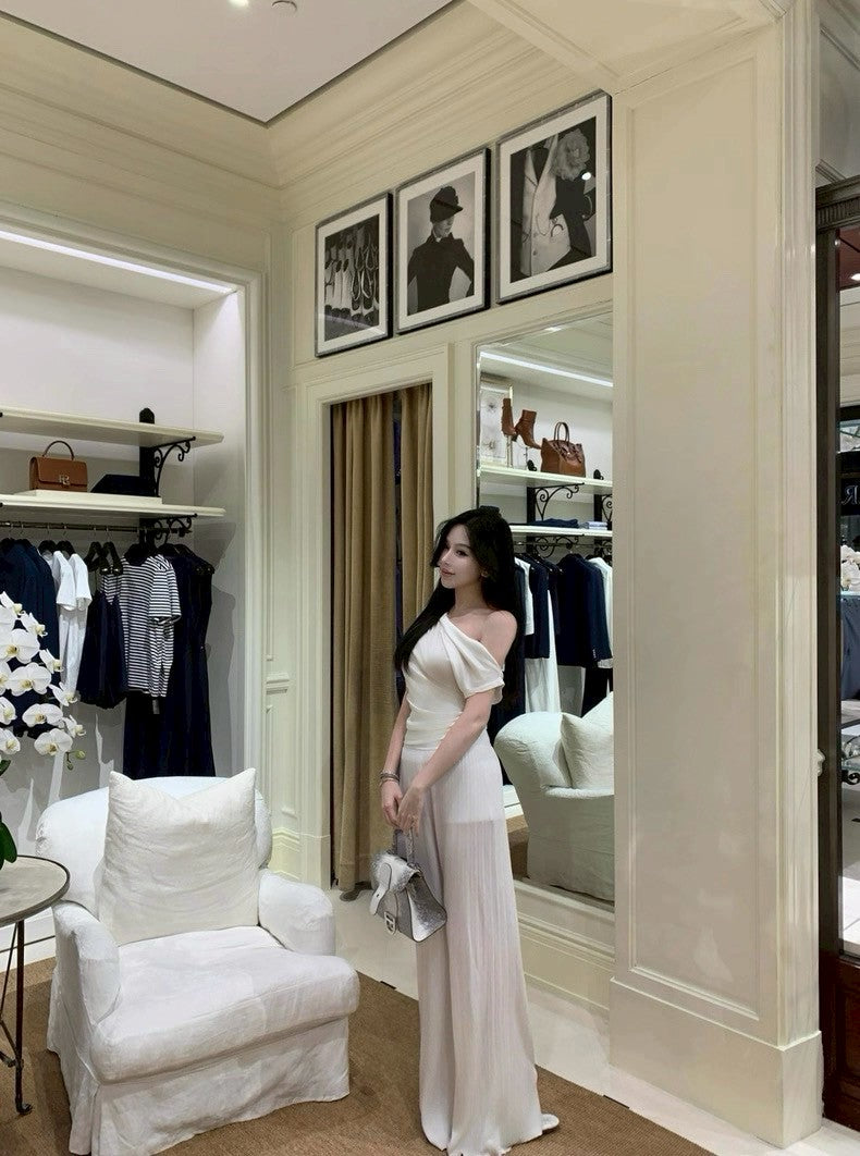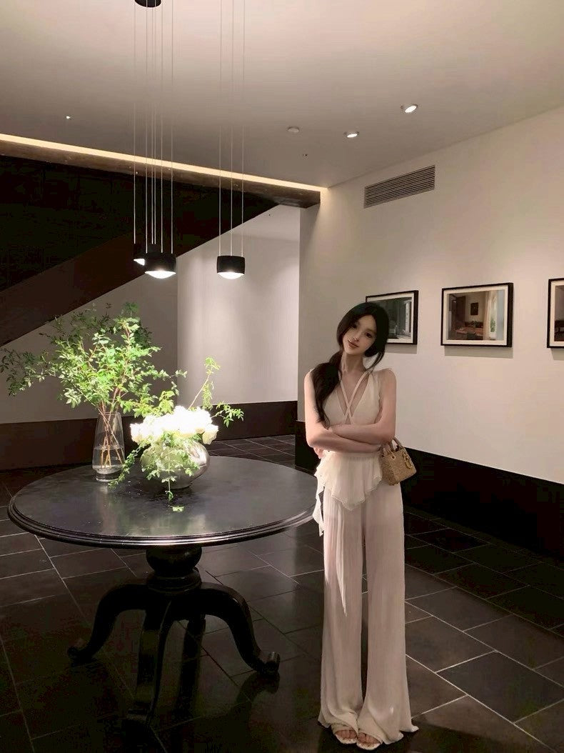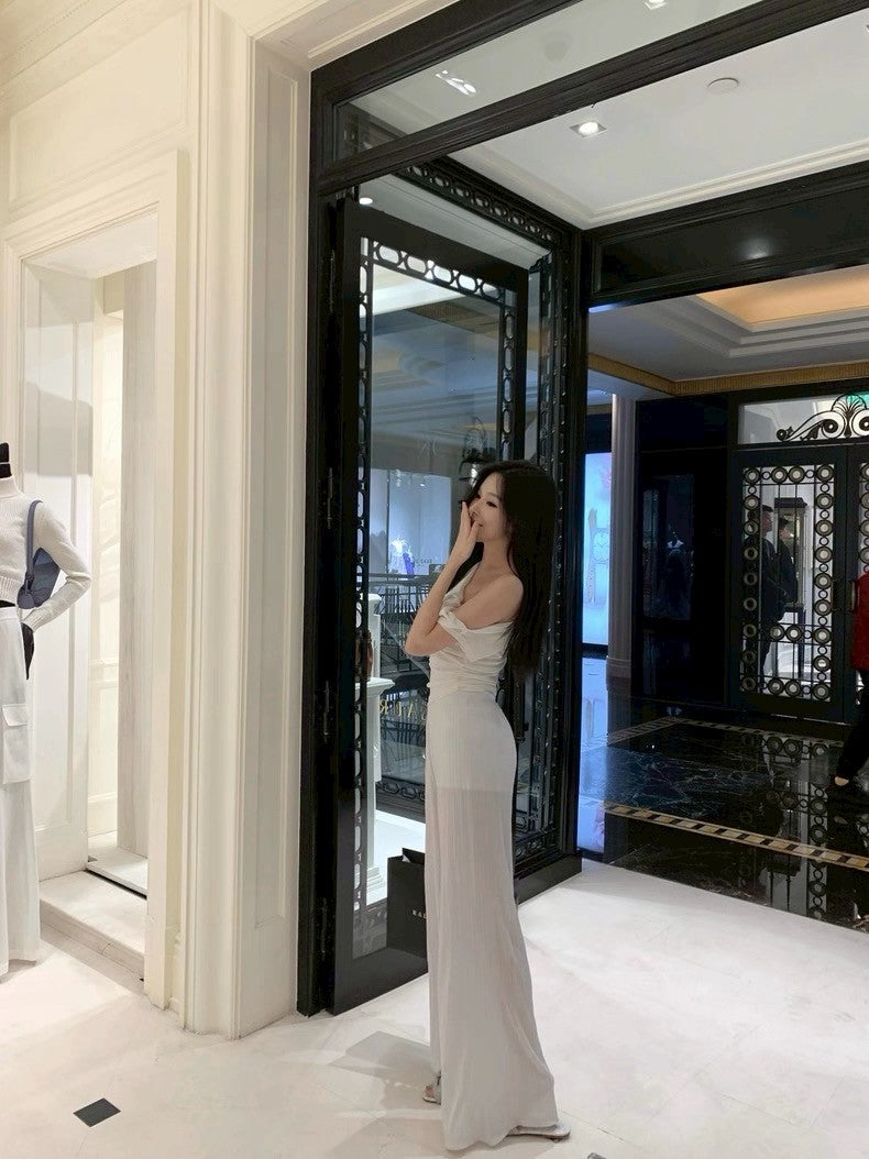 25Aug. 高級感壓褶不易皺垂垂休閒褲 白/黑