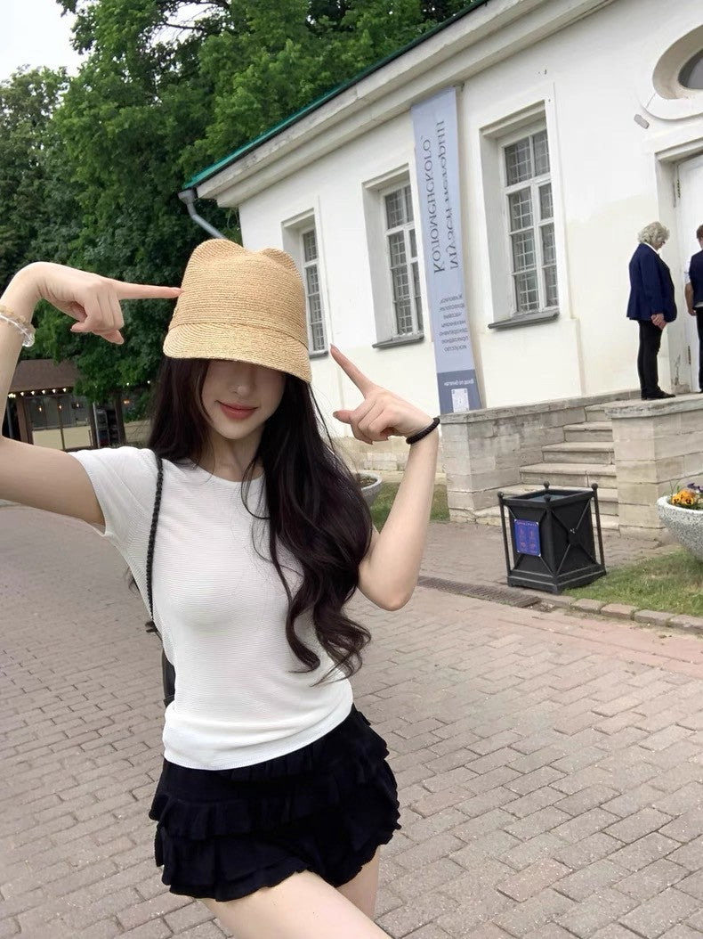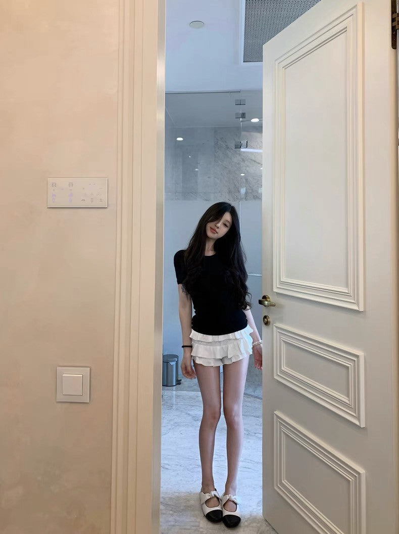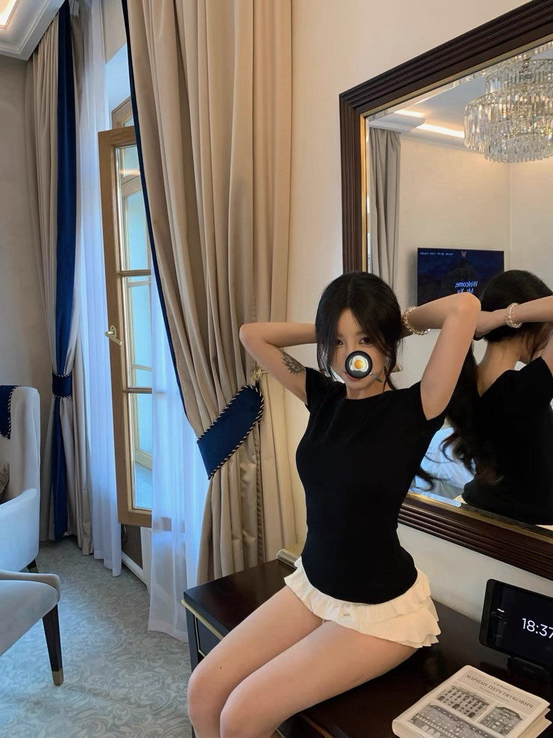 25Aug. arman*俐落圓領正肩針織上衣 白/黑