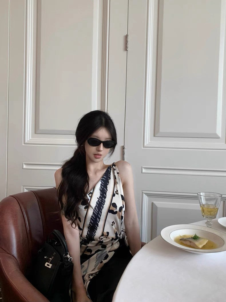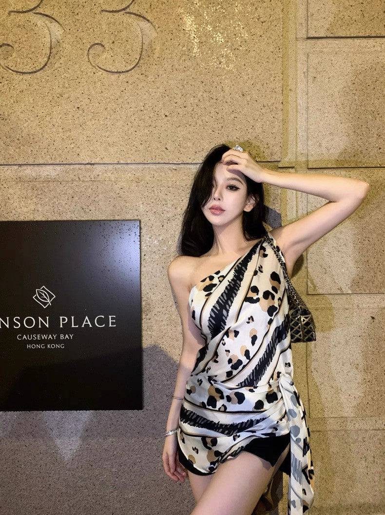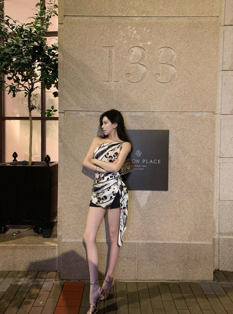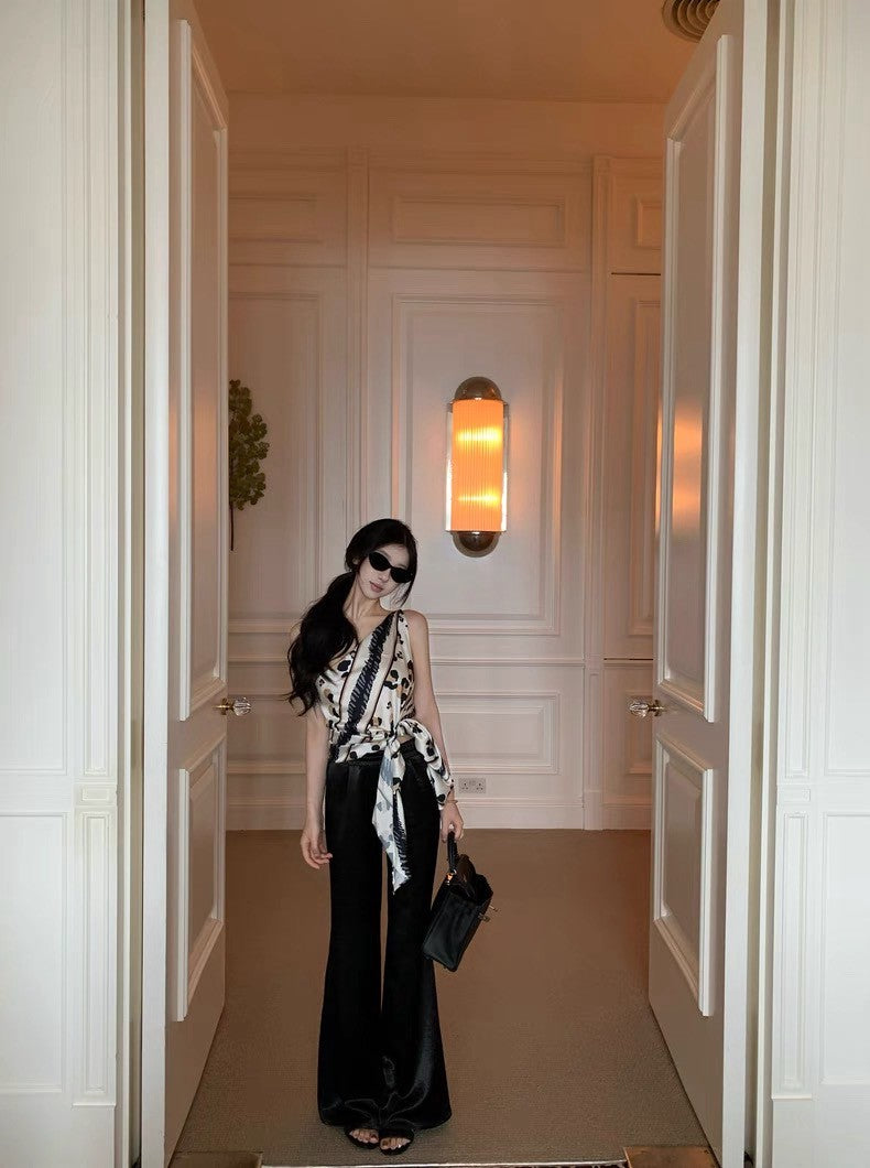25Aug. cavall*黑白豹紋不規則絲巾式上衣