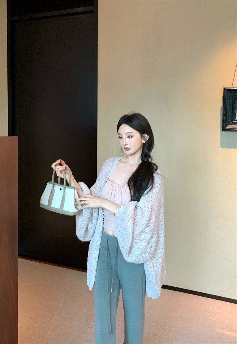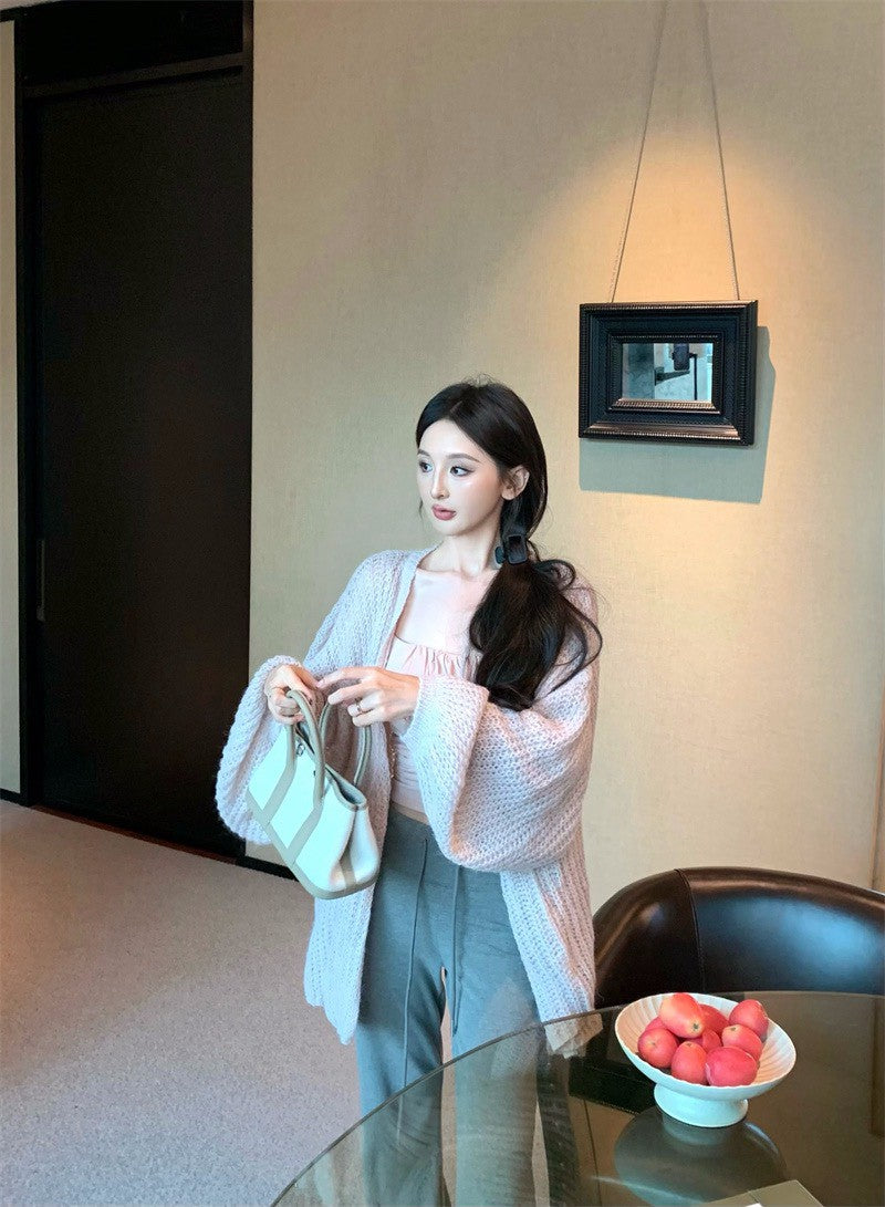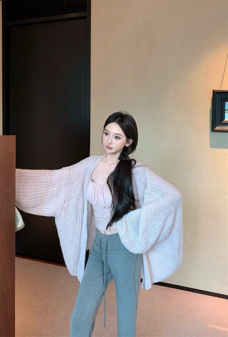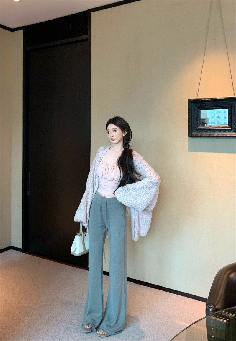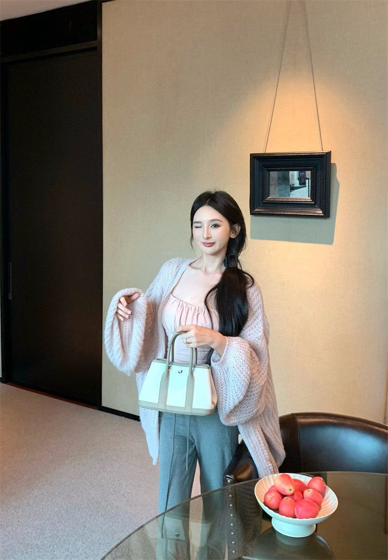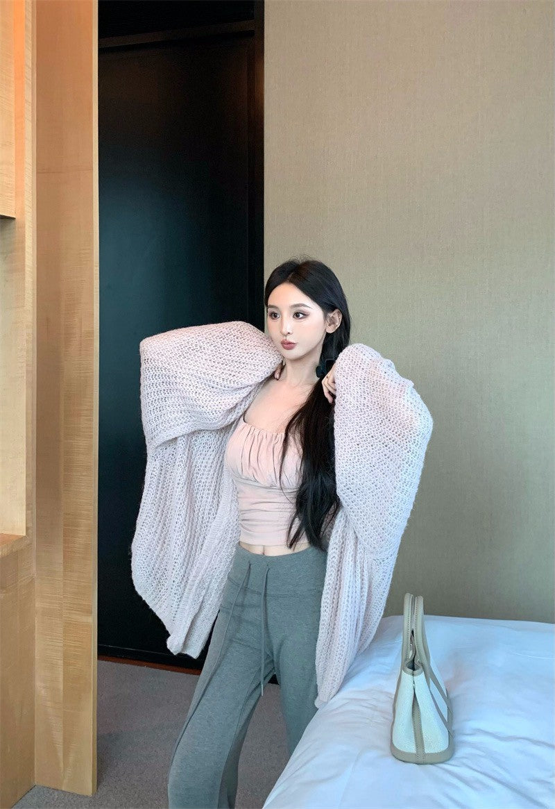 25Dec. 人無骨2.0慵懶穿粗針寬鬆外套 抽繩空氣棉休閒褲 灰粉系列
