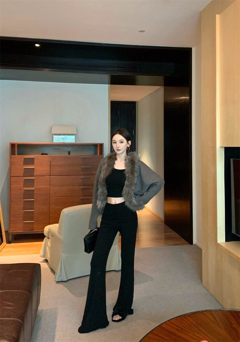 25Dec. 慕斯奶皮糯感毛毛外套 懶人休閒褲套裝 深色系