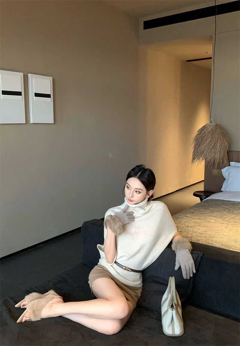 25Dec. 慵懶堆堆領毛衣(附手袖)修身卡色半身裙