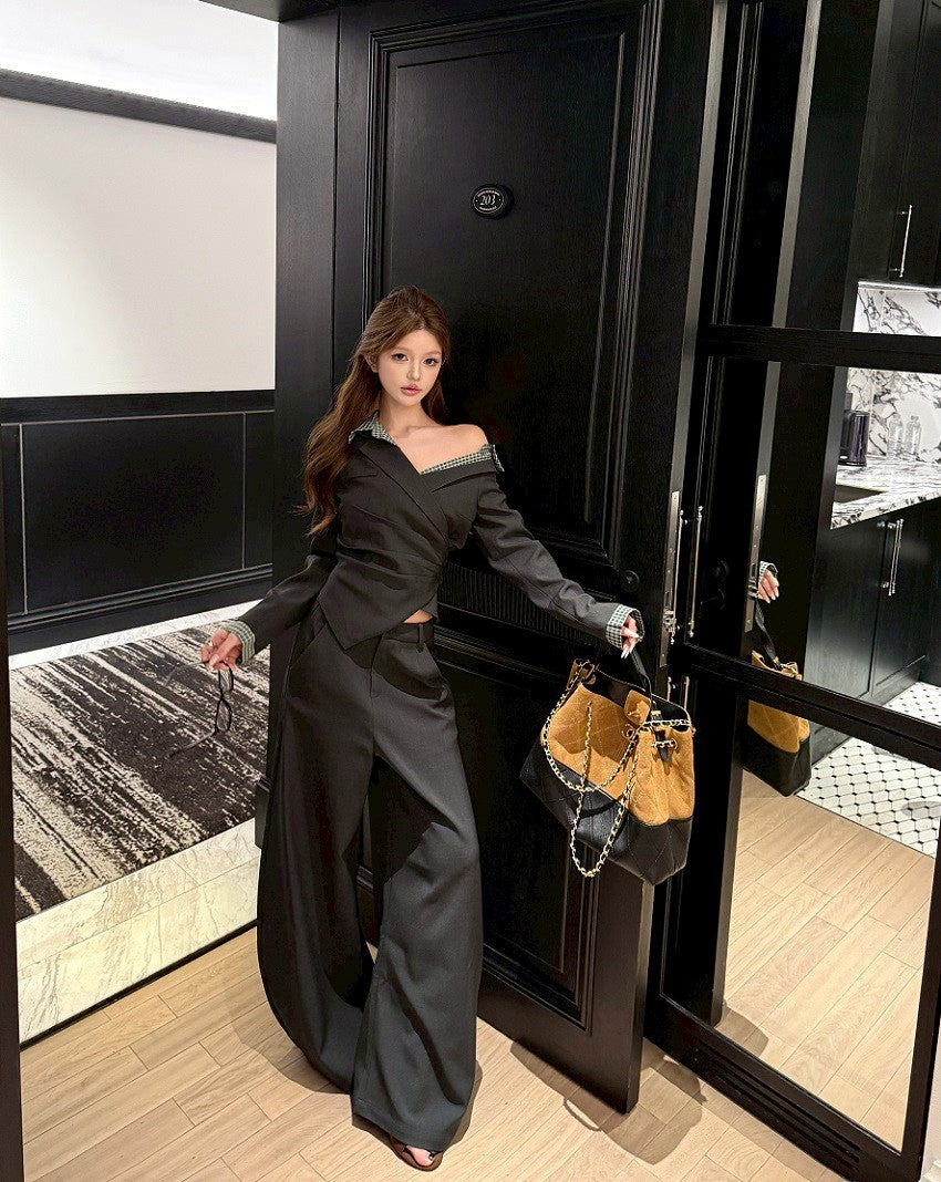 25Dec. 時髦official斜裁假兩件襯衫 西裝闊腿褲