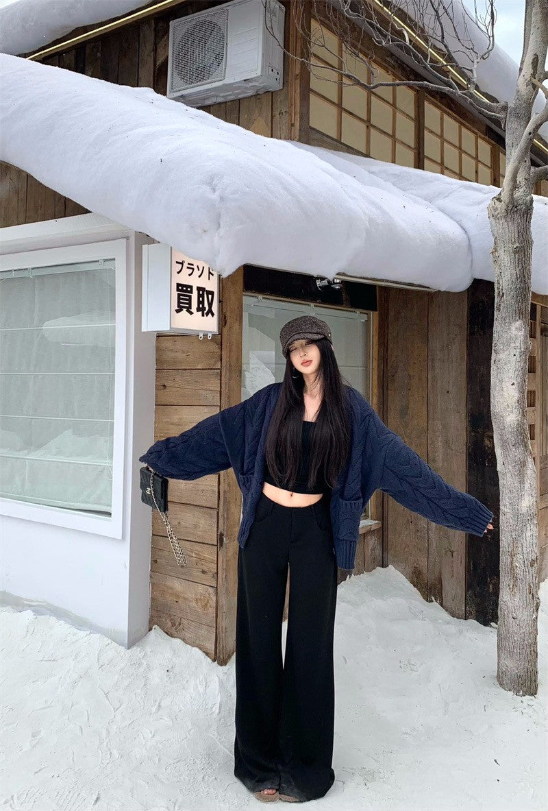 25Dec. 暗色過冬基礎U領打底衣/藏藍麻花針織開衫