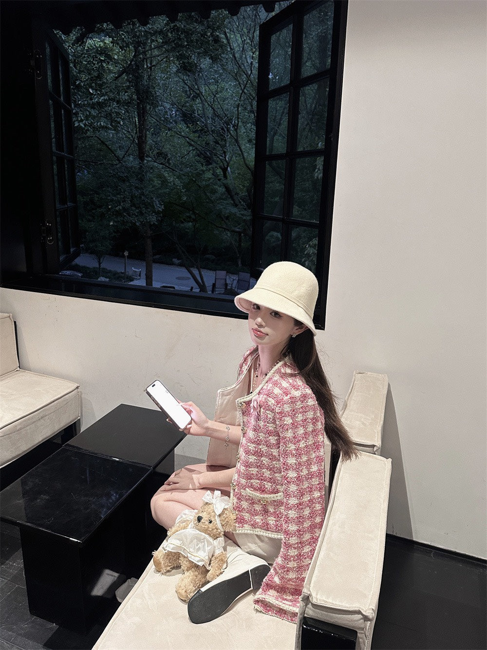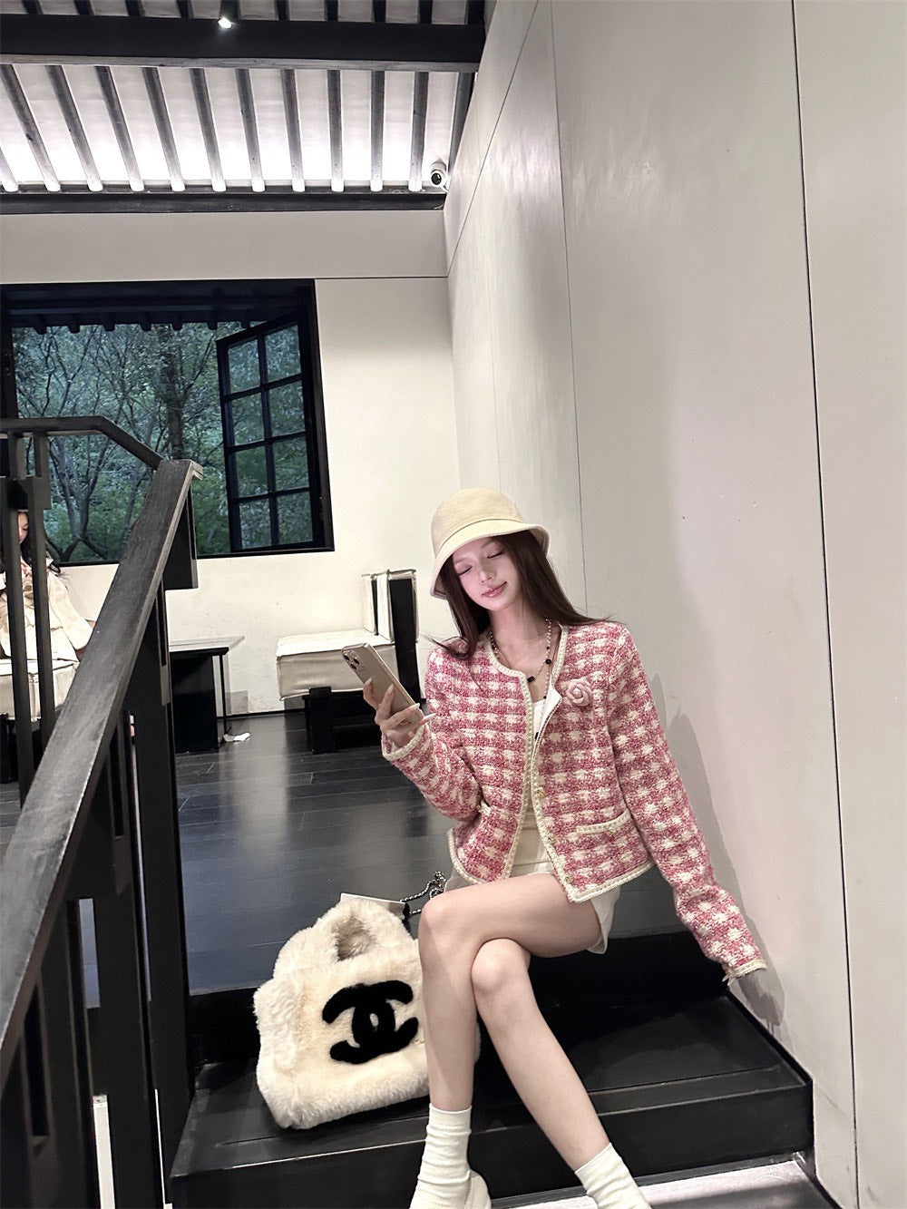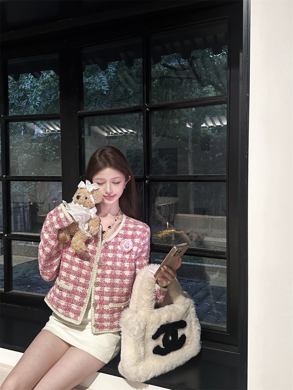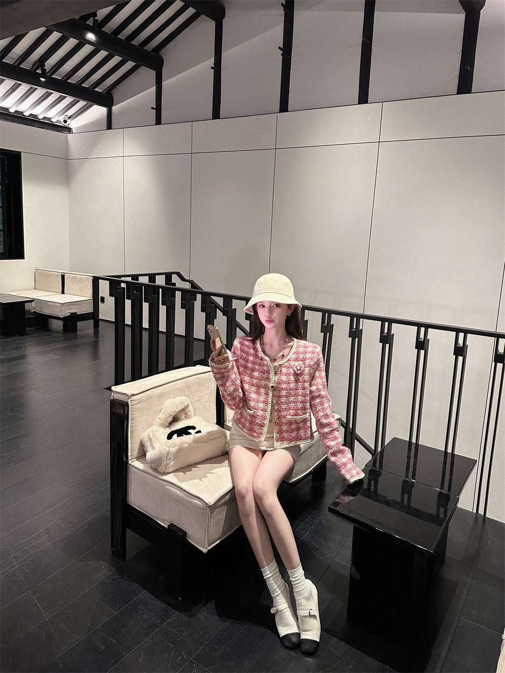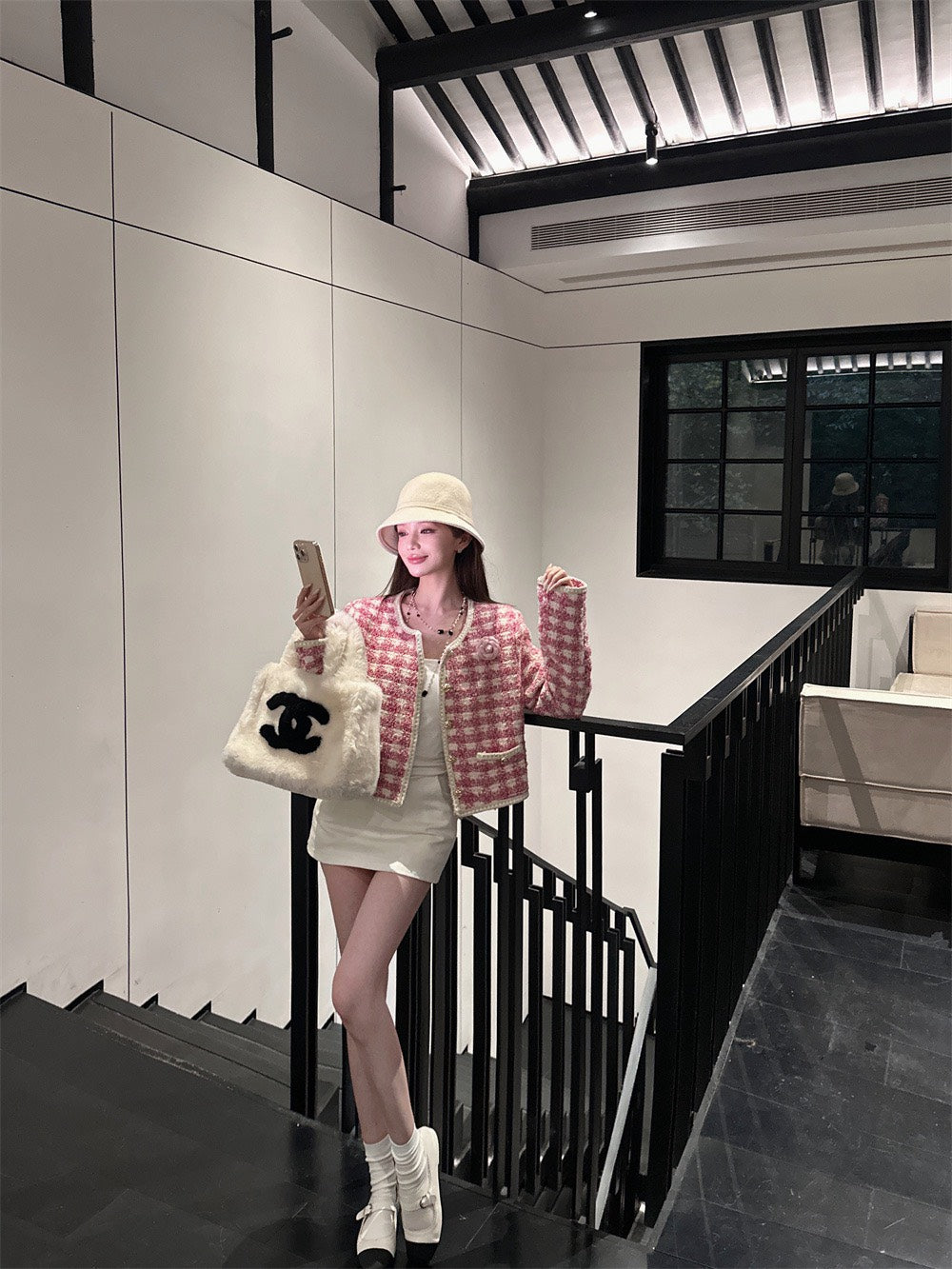 25Dec. 正反兩穿‘’甜心芭比粉白格紋粗呢小香外套