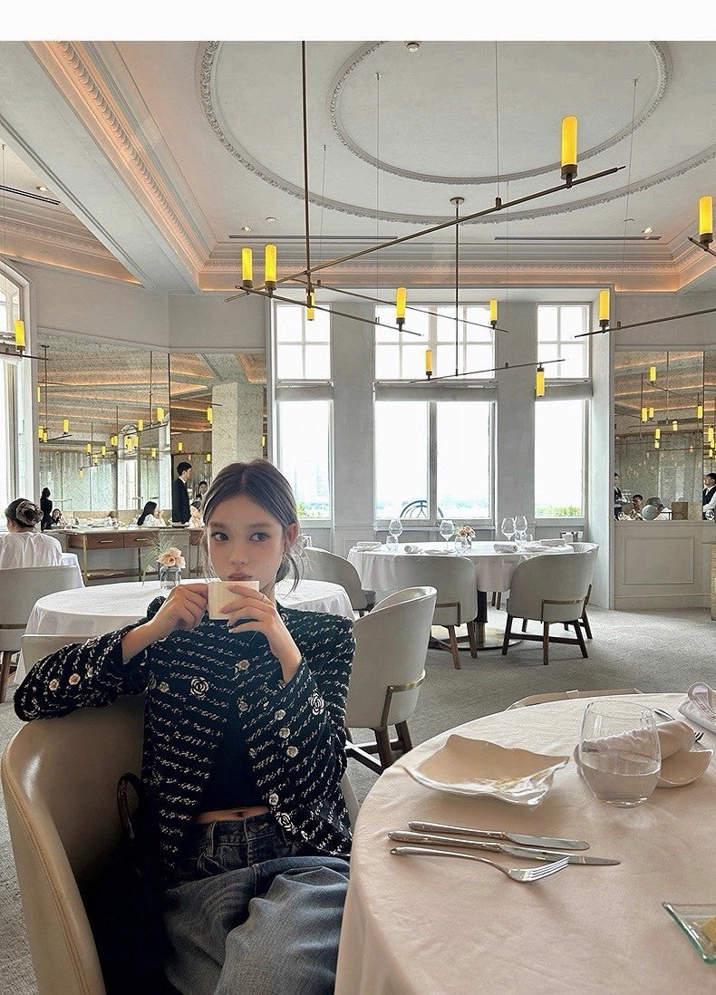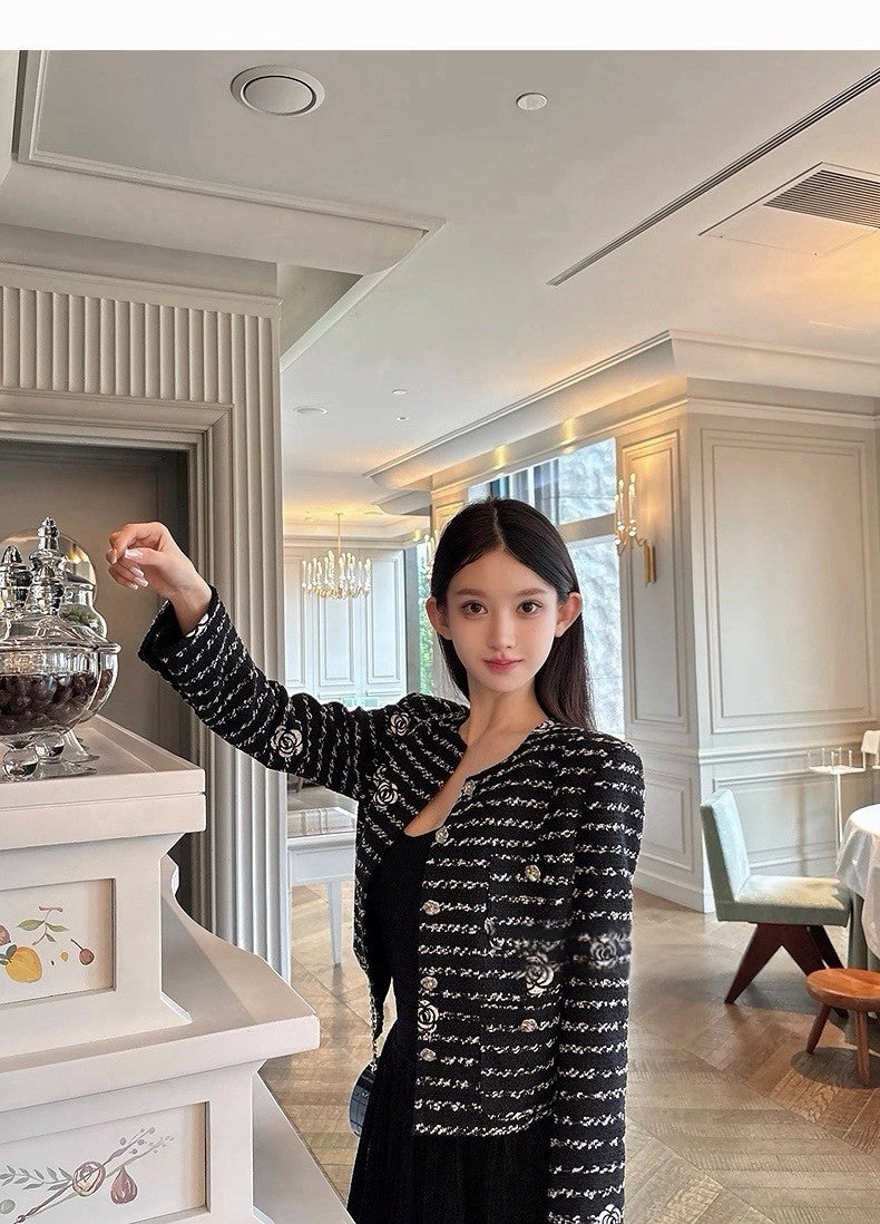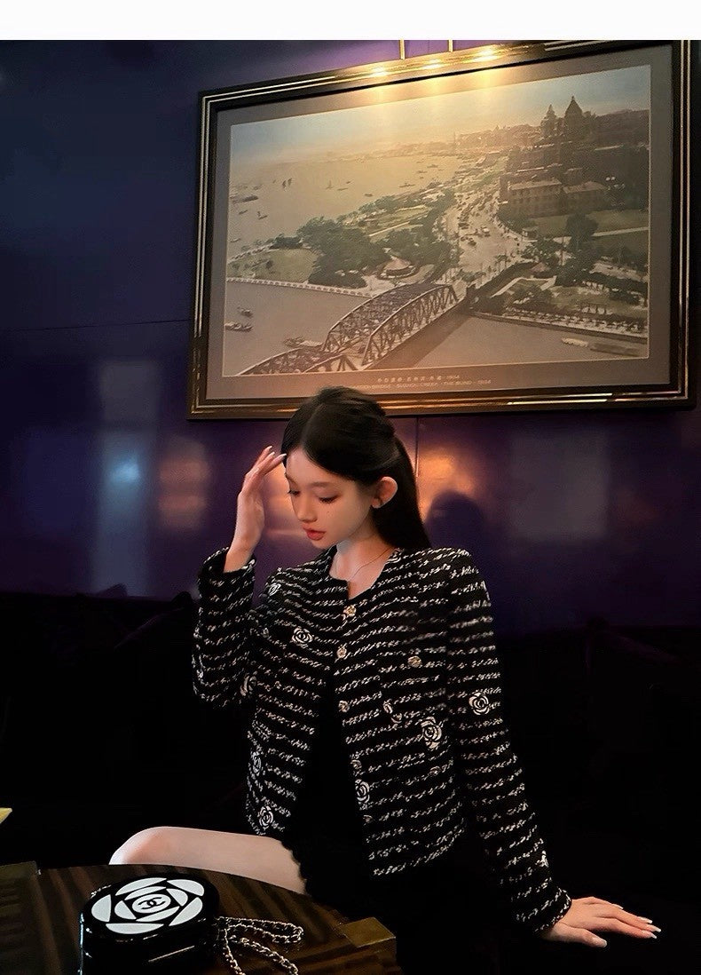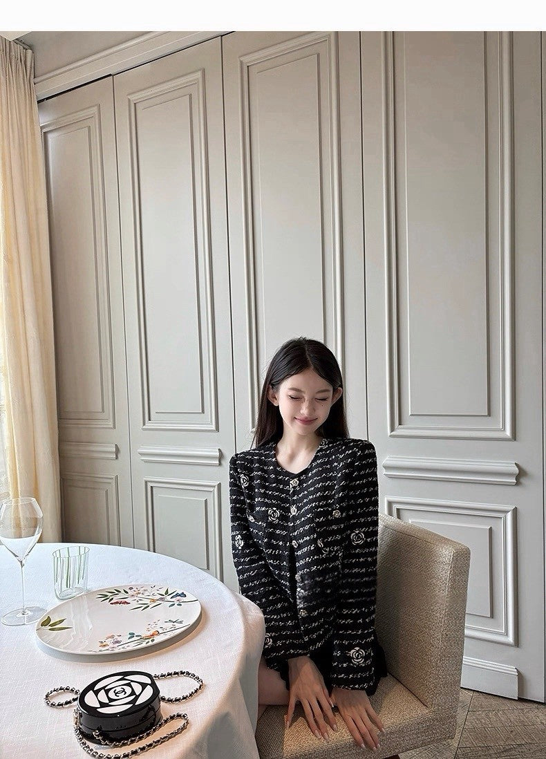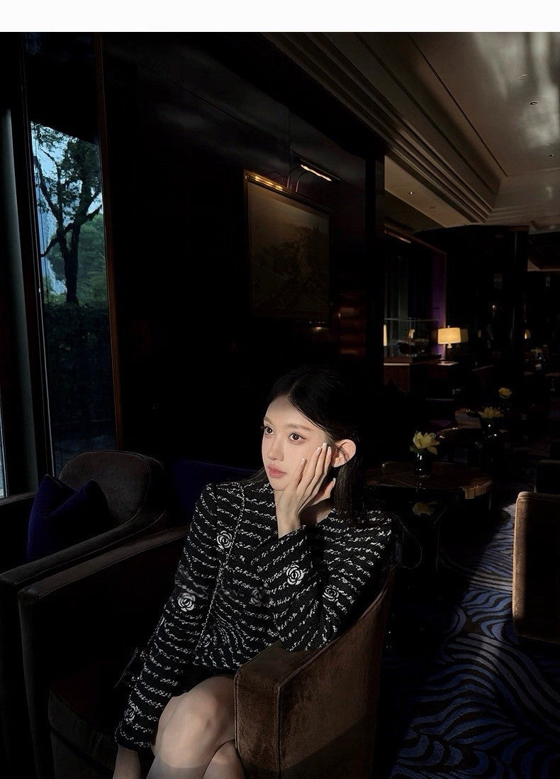 25Dec. 貝夢德memory手工山茶花刺繡粗呢外套 黑