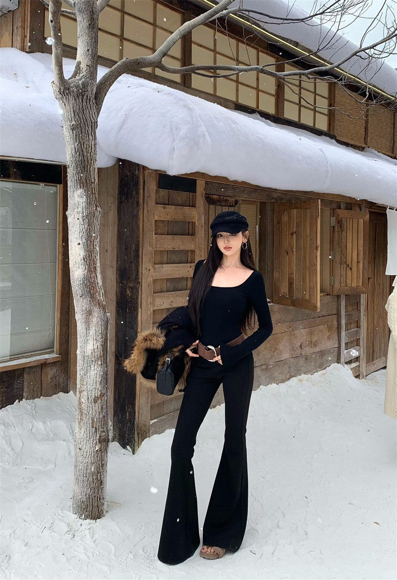 25Dec. 貴女Alpha蝙蝠袖毛毛外套 帶胸墊U領上衣 黑