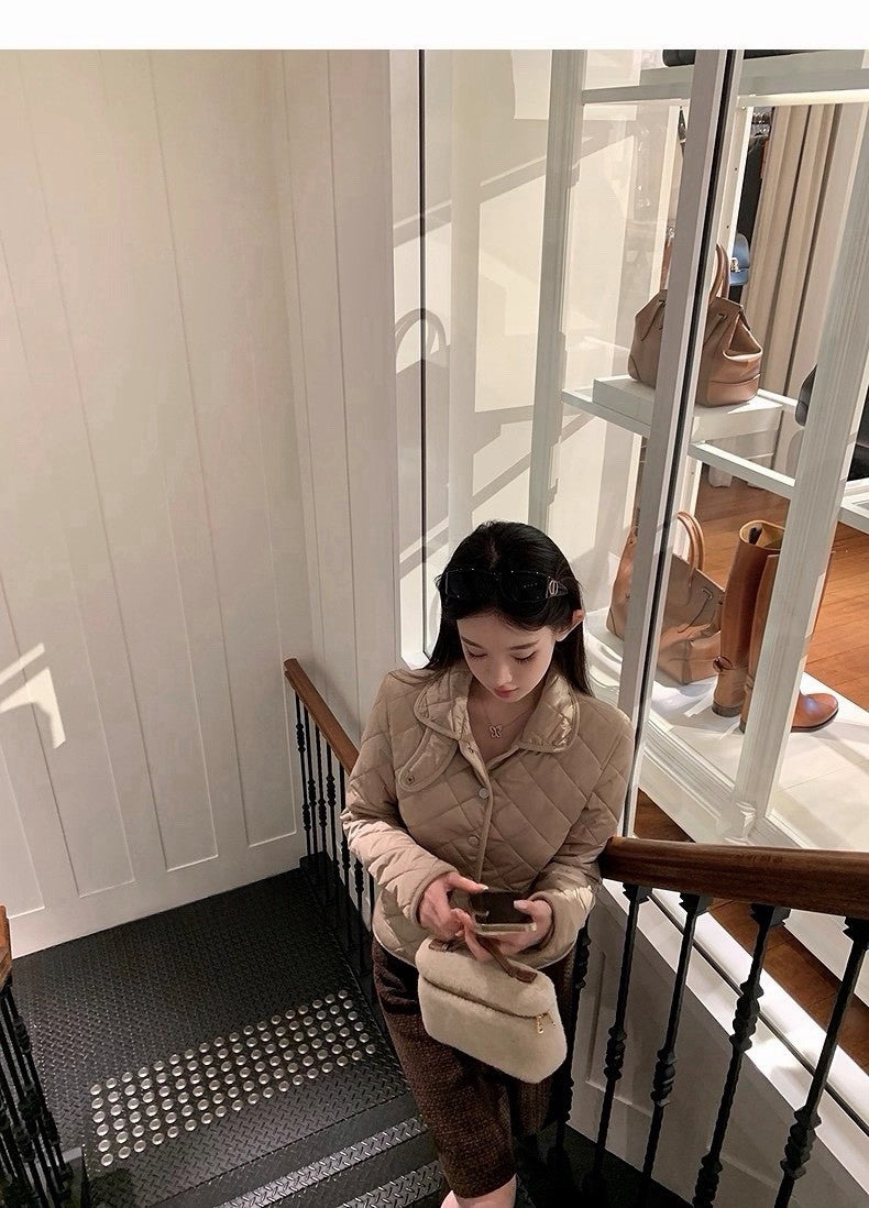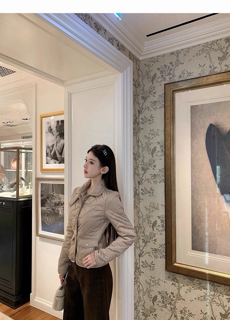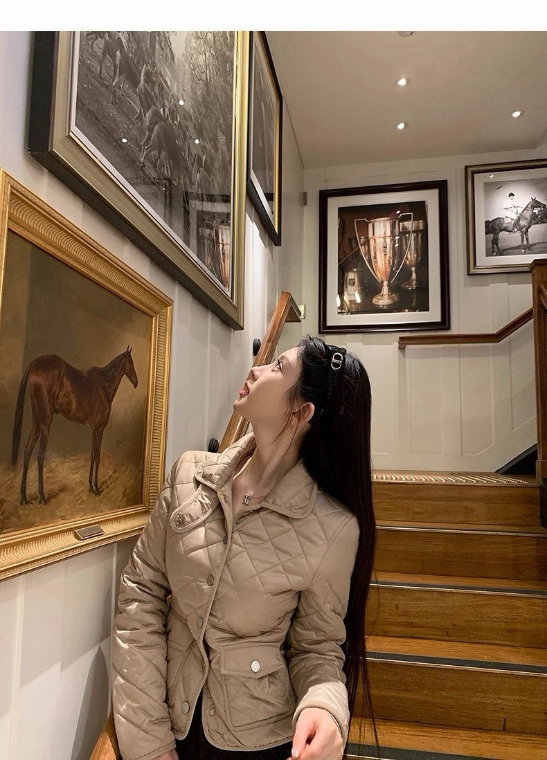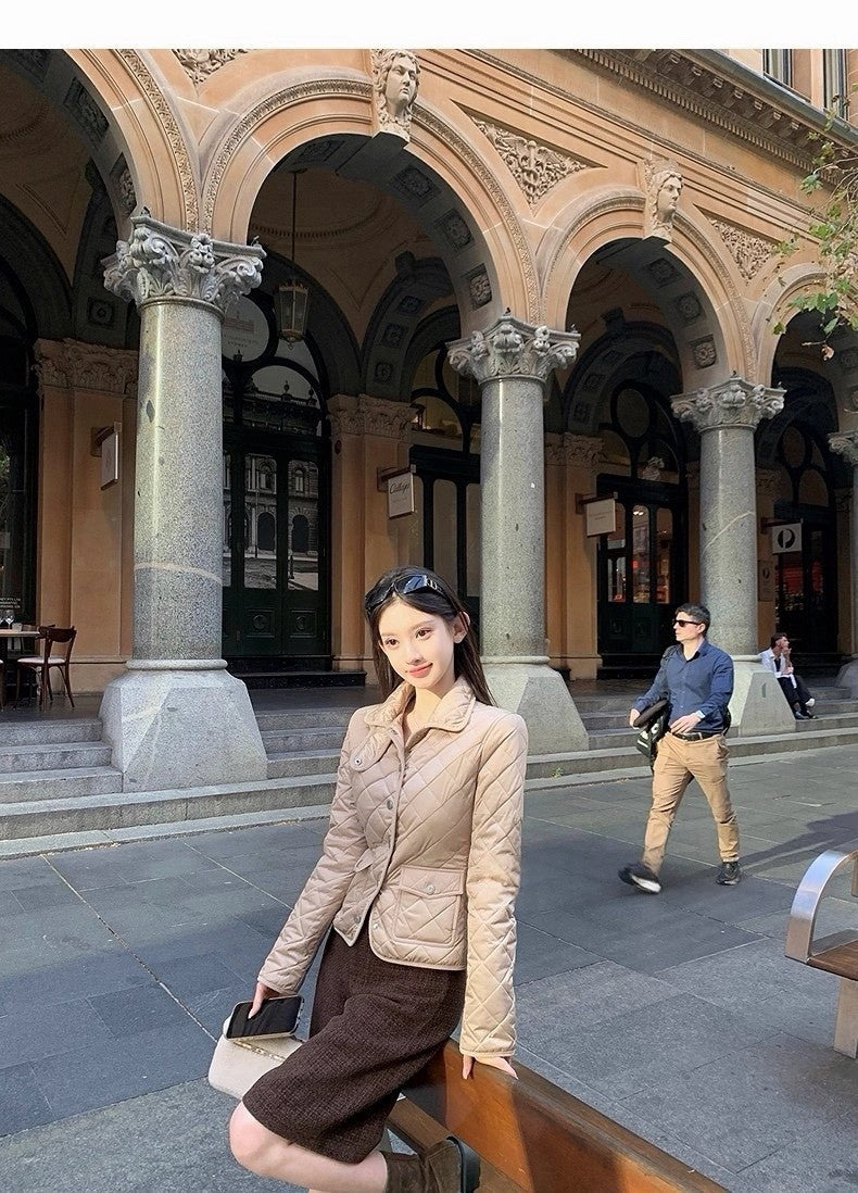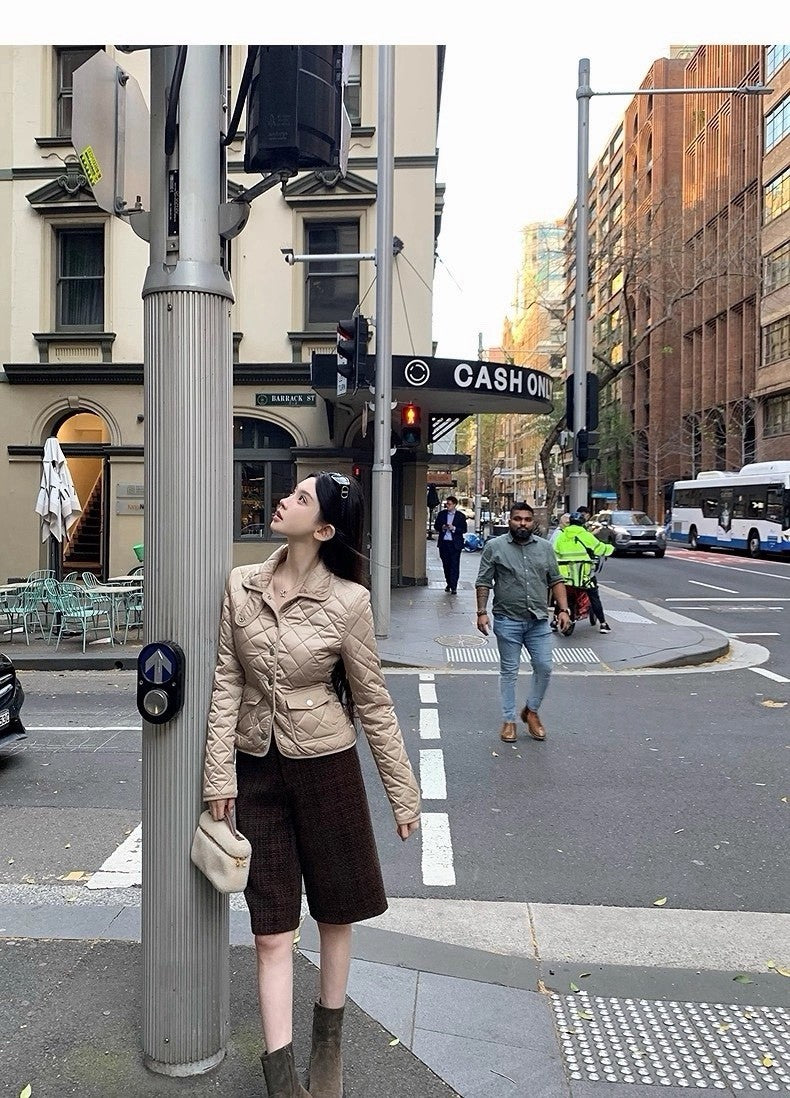 25Dec. Rha1*老錢菱格紋收腰羽絨外套 卡其