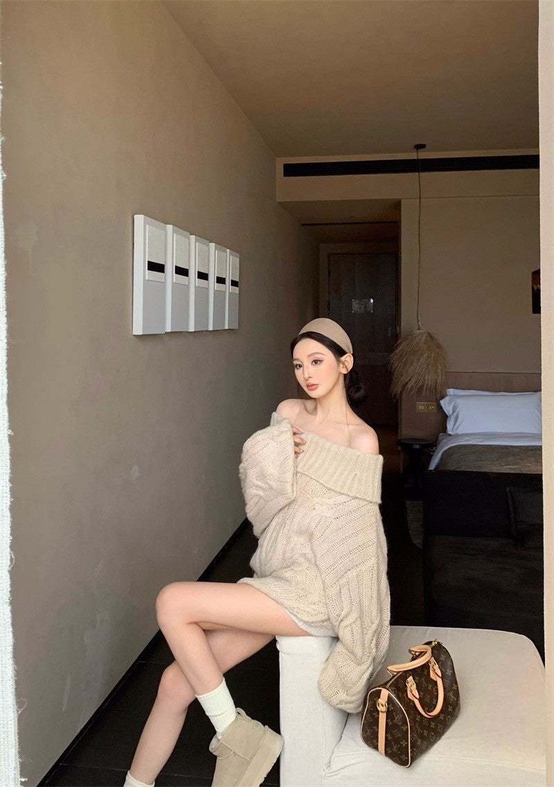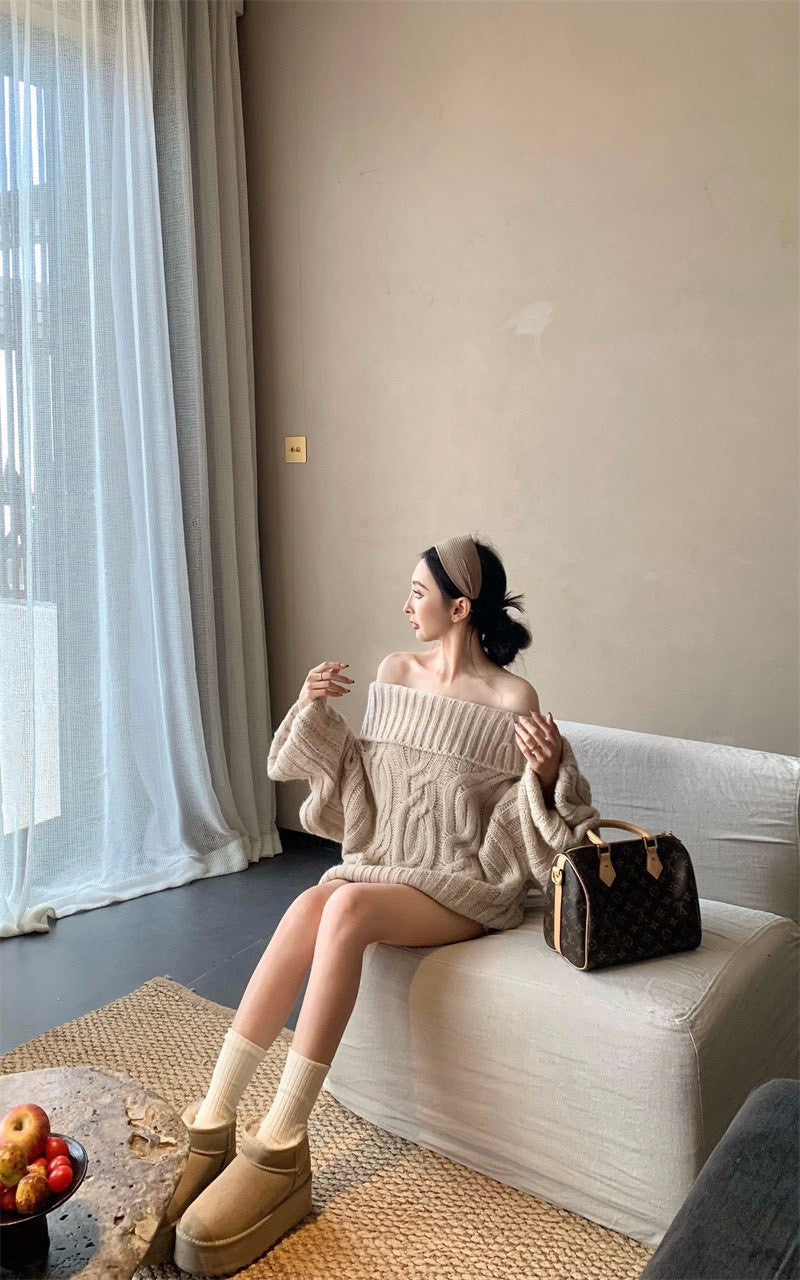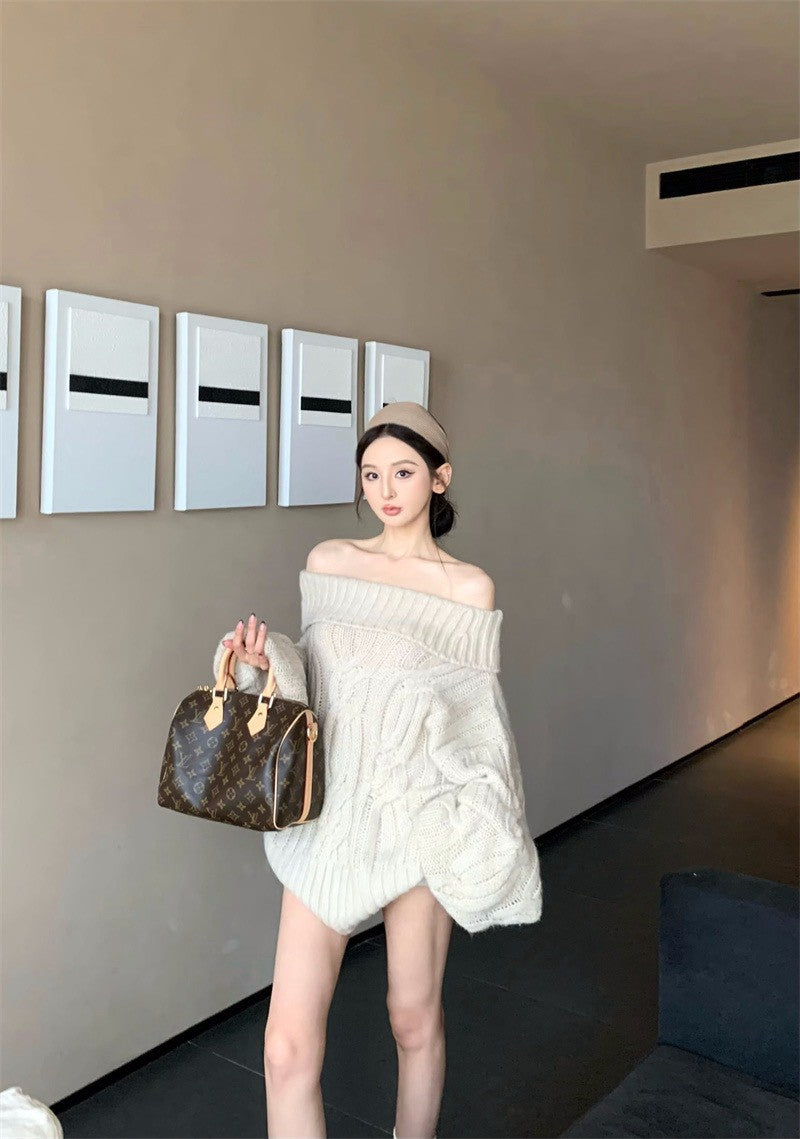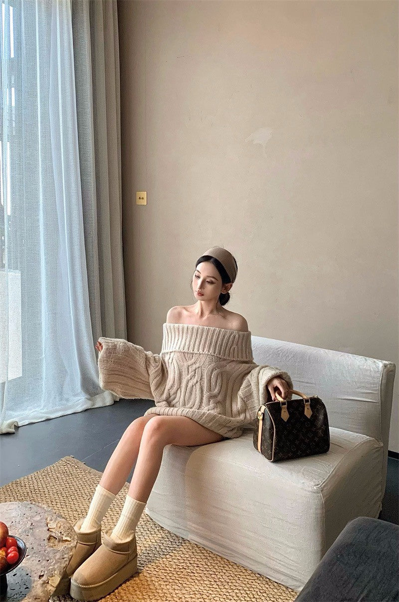 25Dec. Romantic慵懶純慾vibe一字領麻花針織上衣 卡