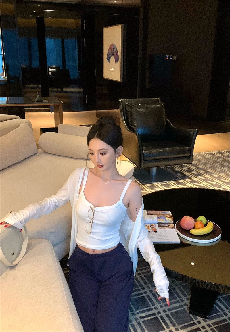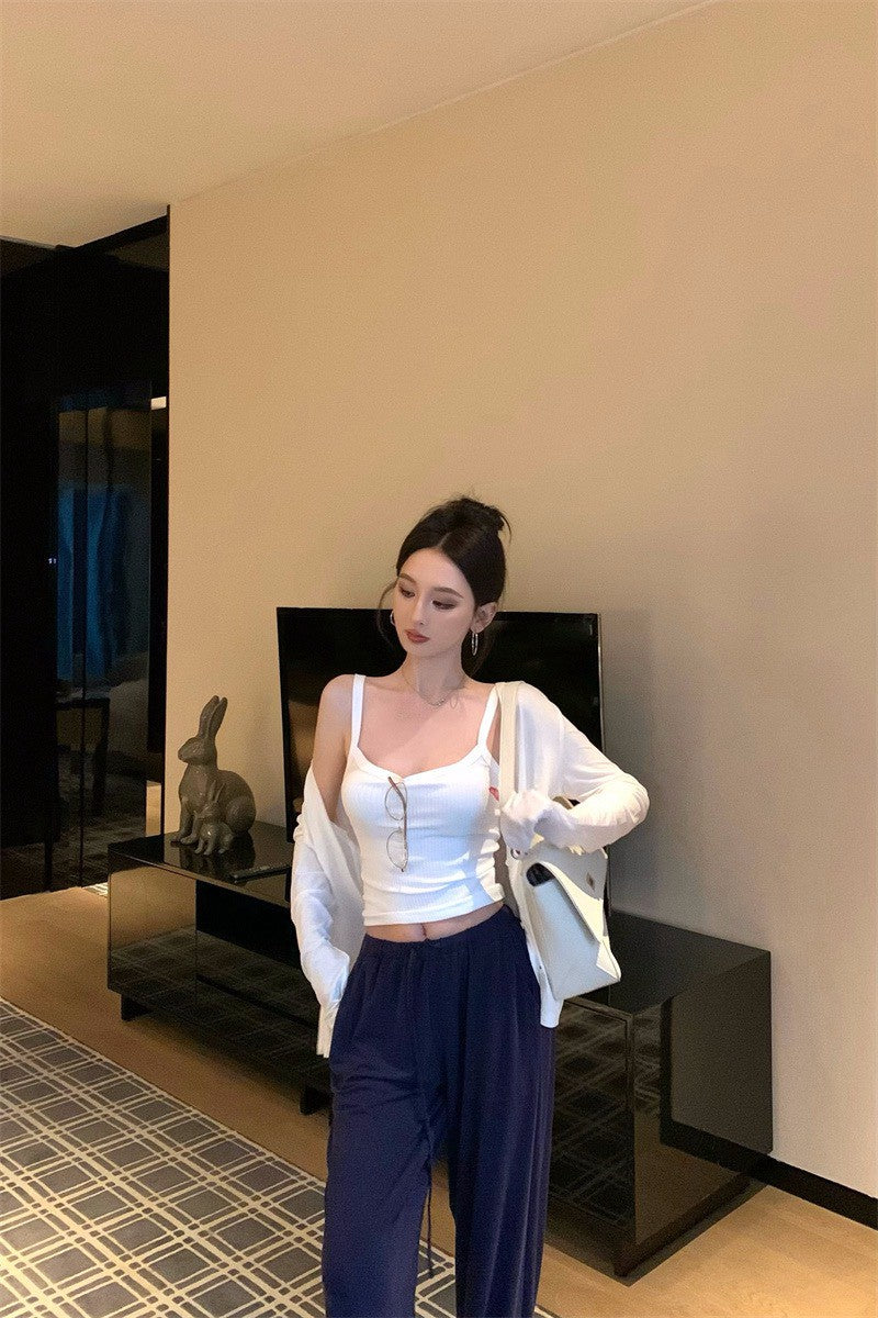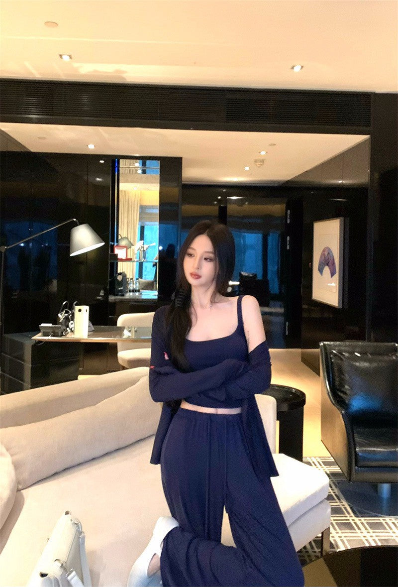 26Jan. 低調穿出好身材居家系列背心外套2件組 藏藍抽繩休閒褲