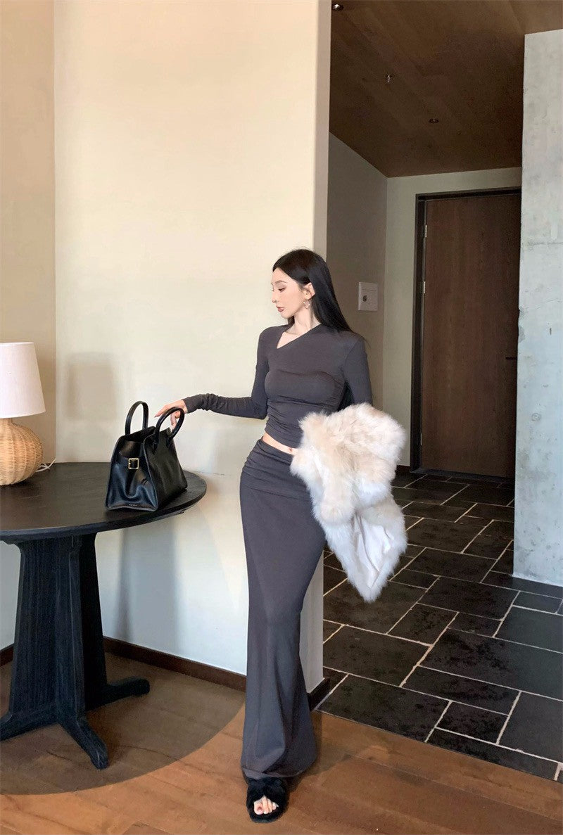 26Jan. 好身材有氧2.0不規則設計感休閒褲/半身裙套裝 黑灰/純黑