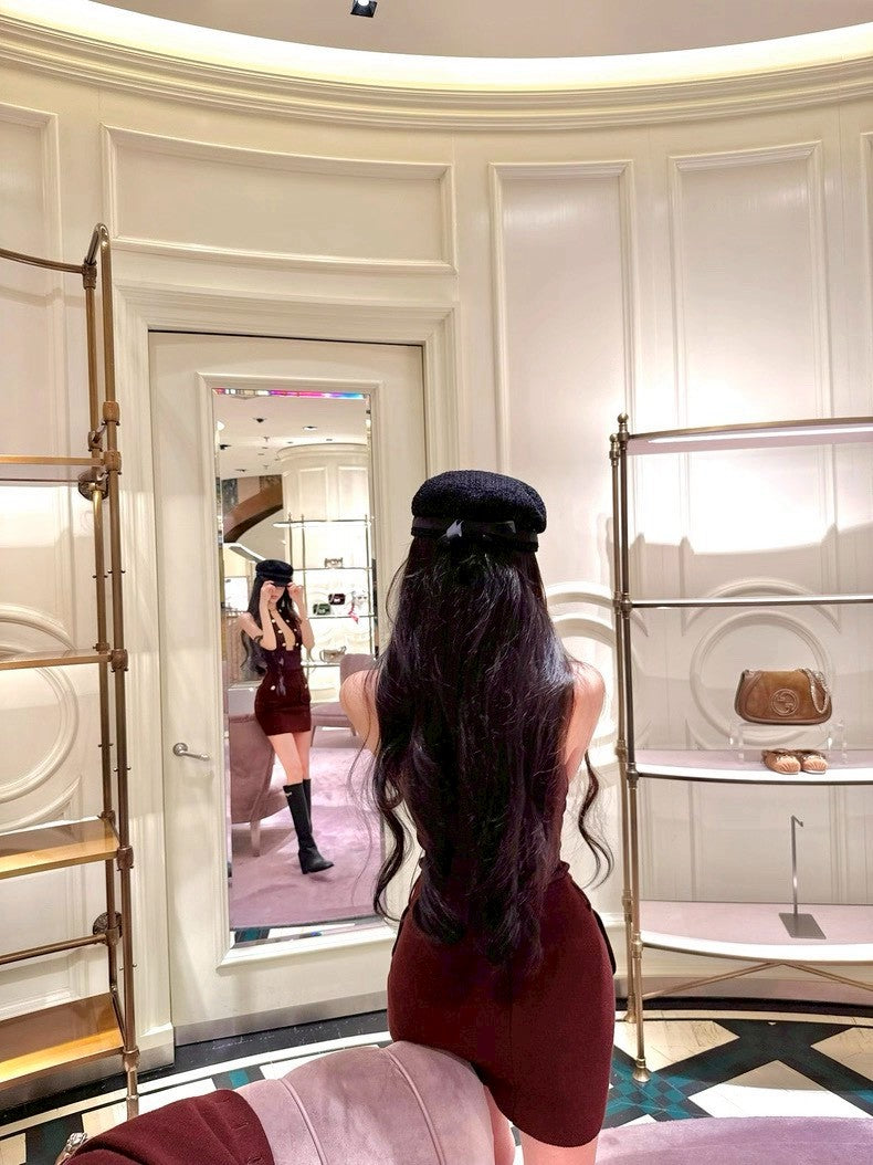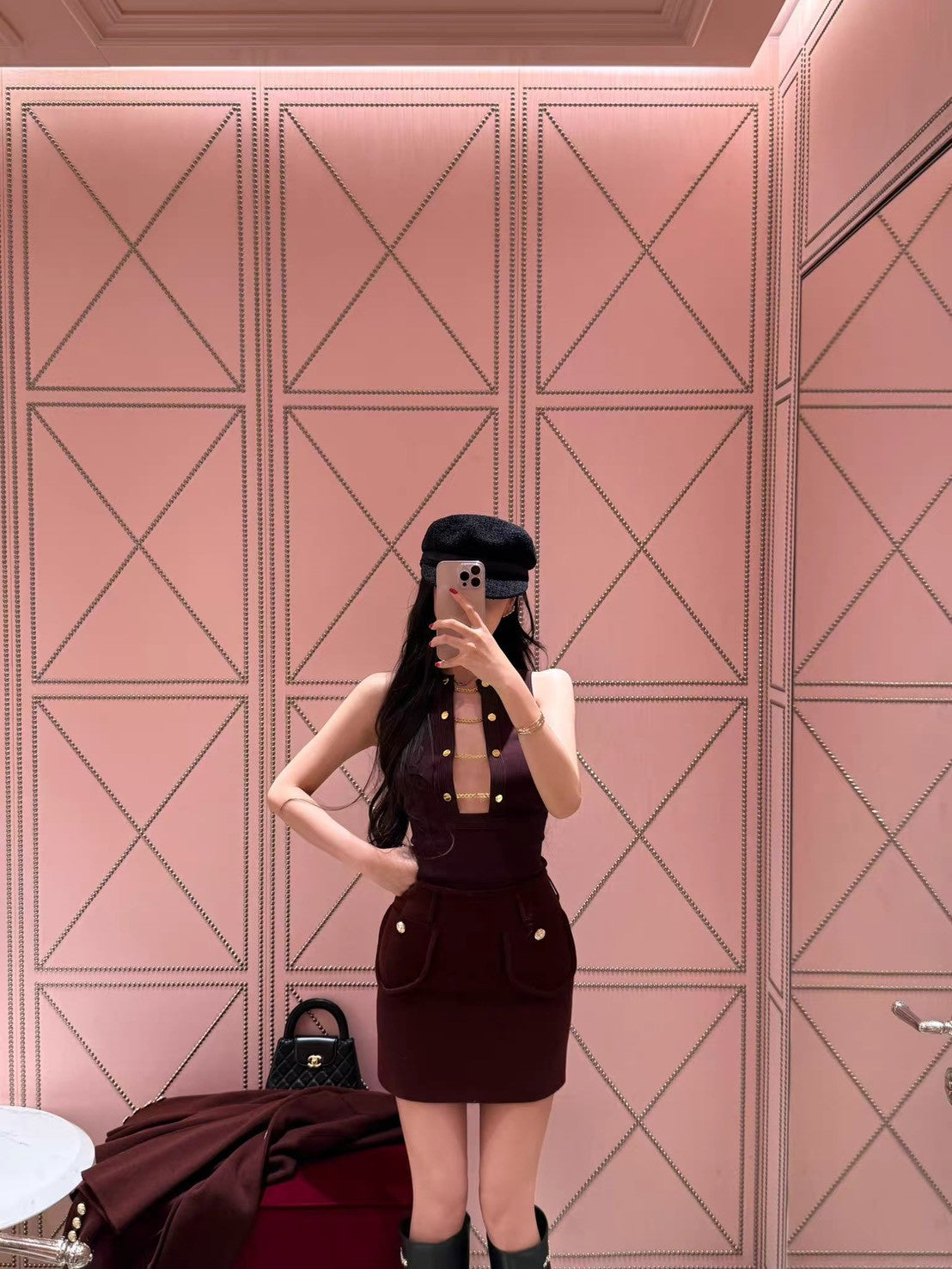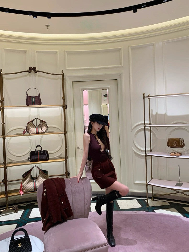 26Jan. 性感雙排金釦小巴鏈條背心 酒紅