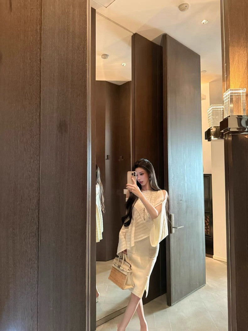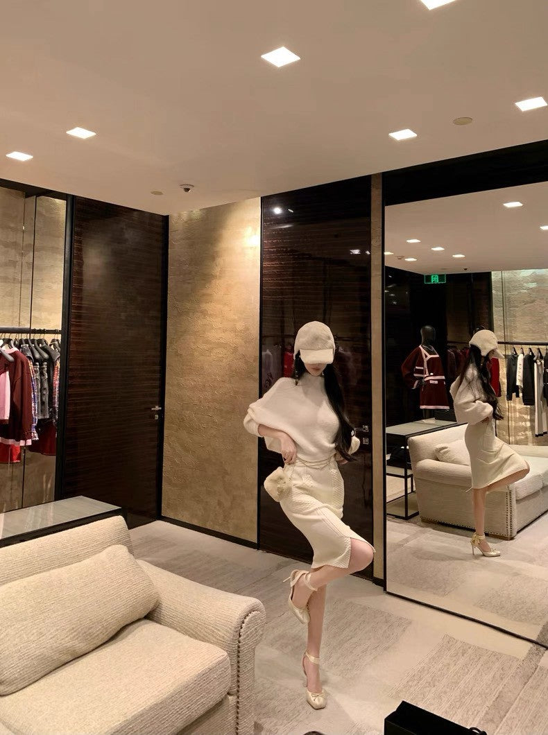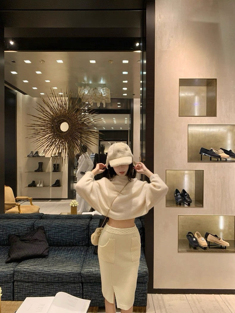 26Jan. 溫柔粗支口袋鈎邊針織半身裙 白/黑
