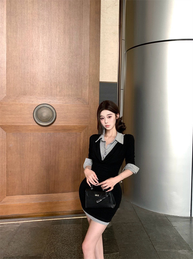 26Jan. 通勤百搭學院假兩件式襯衫連身裙