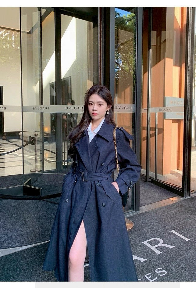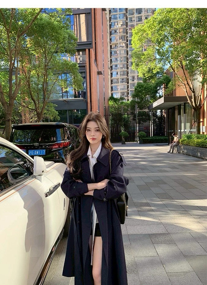 26Jan. 都市麗人智性美藏青色廓形風衣外套
