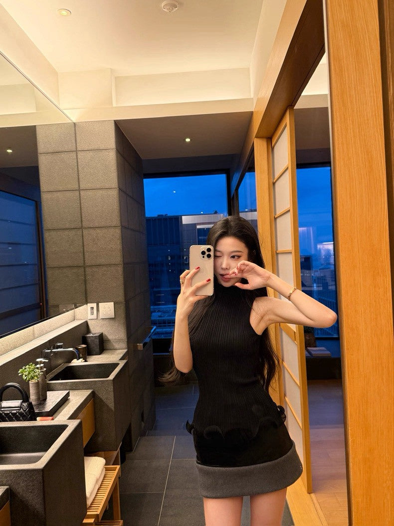 26Jan. Fend*申有娜同款花瓣擺針織背心 白/黑