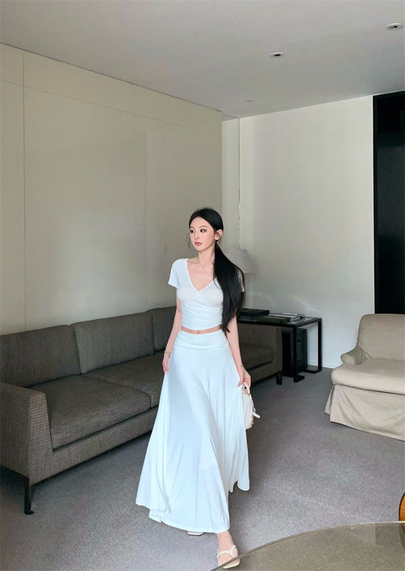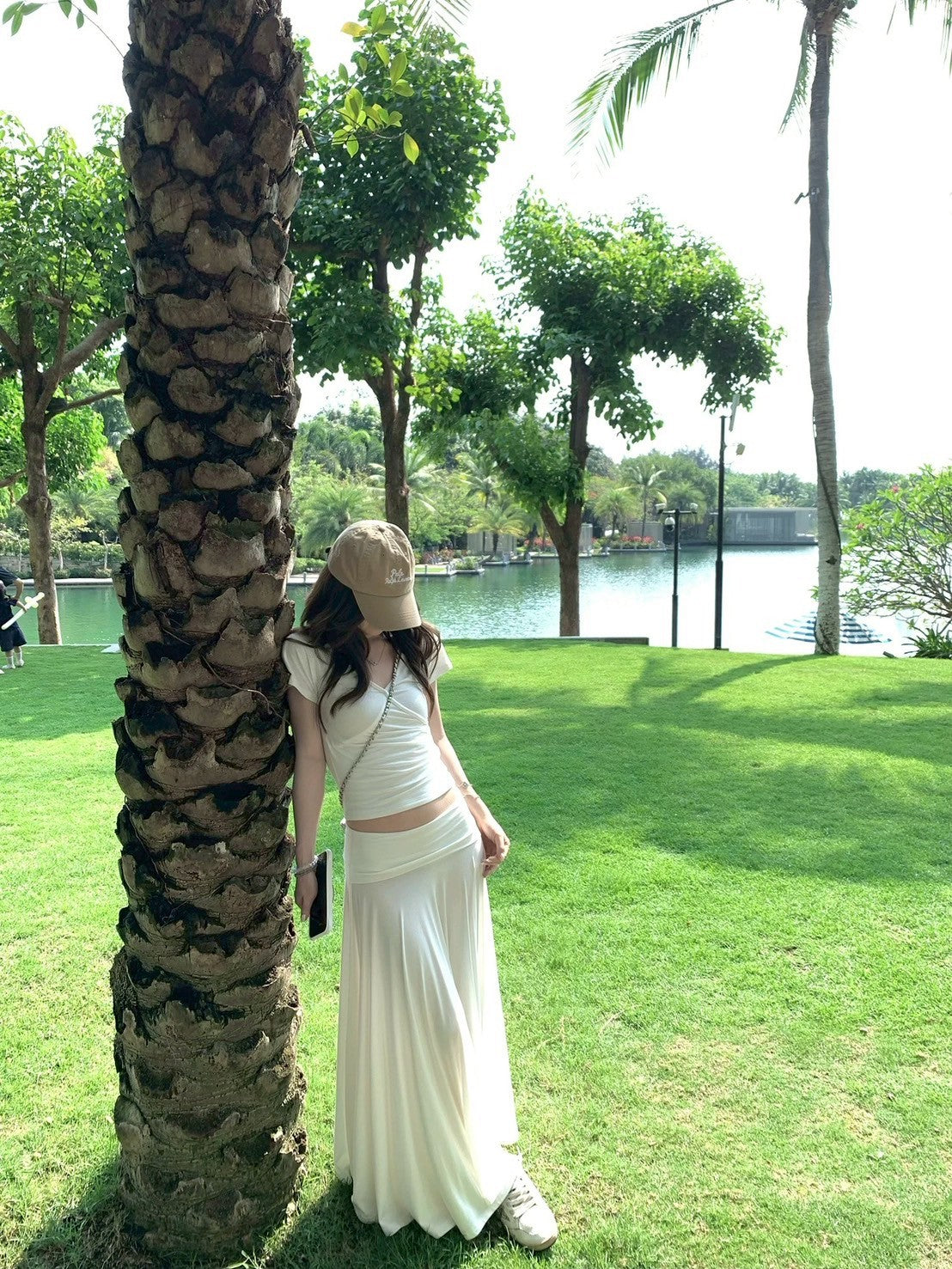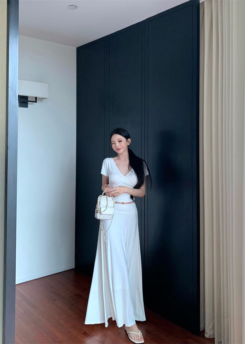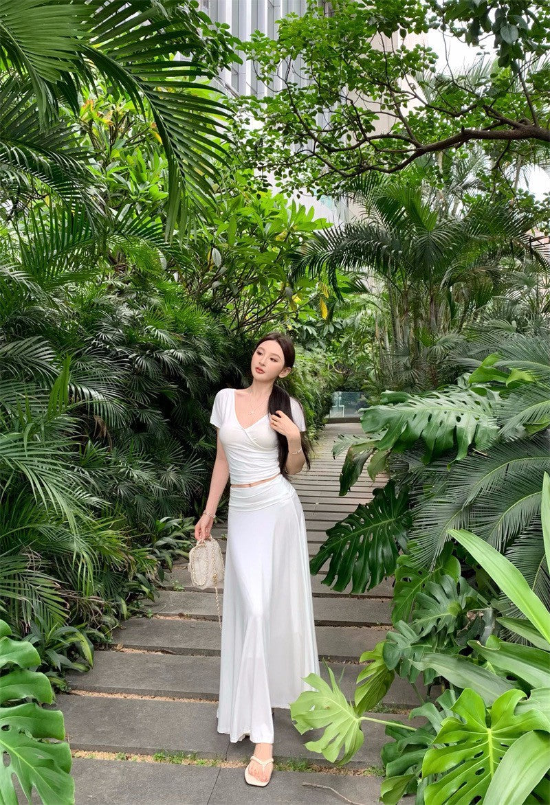 25Jul. 一眼愛上!紙片上衣半身裙套裝 米白