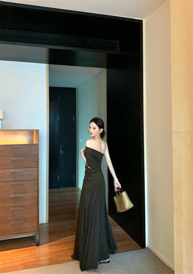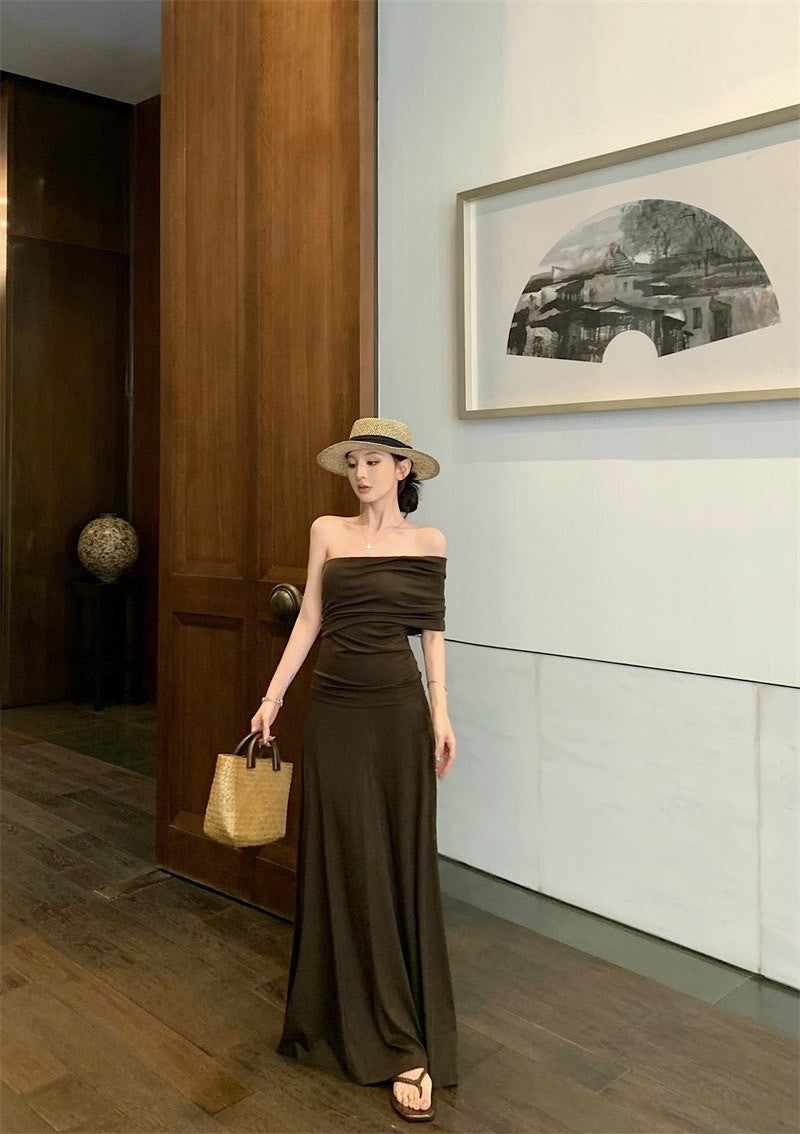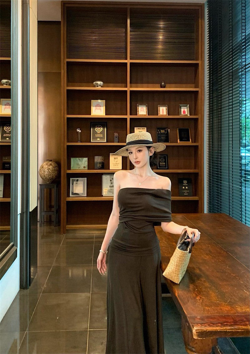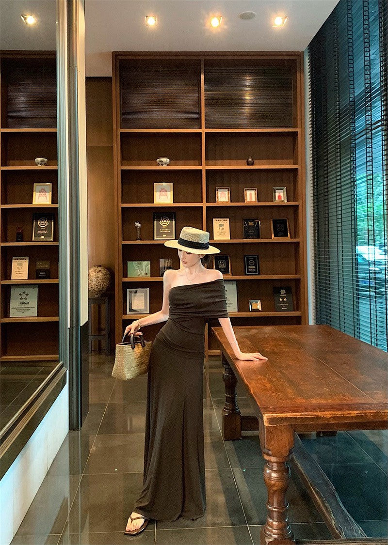 25Jul. 女主人物 露肩單袖半身裙慵懶套 咖