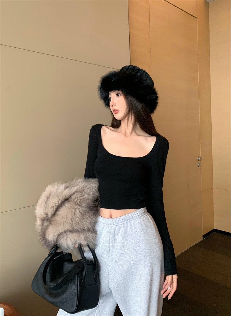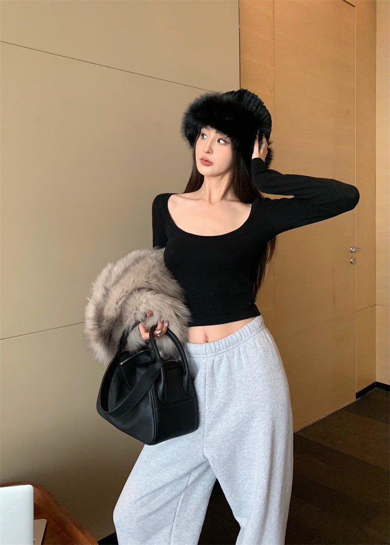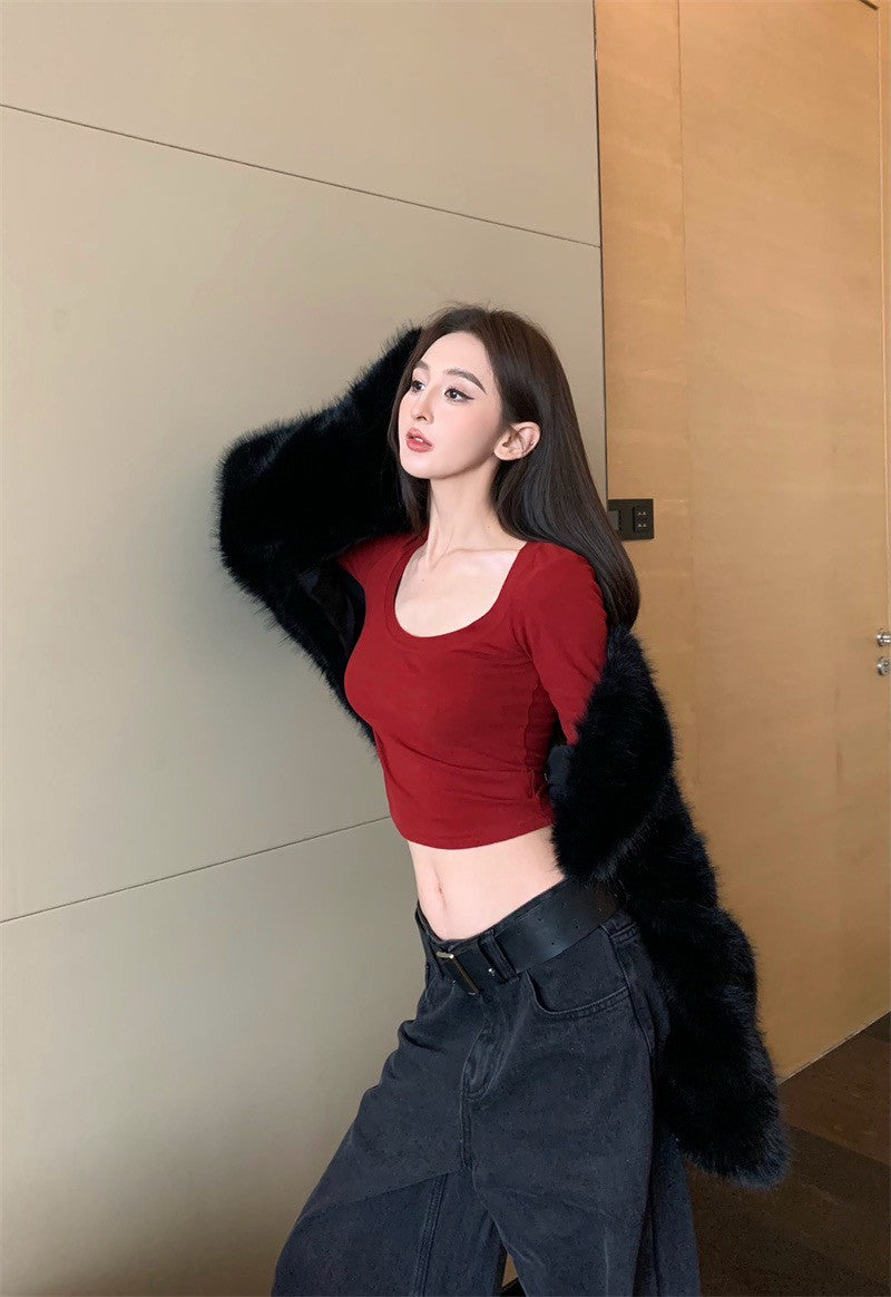 25Jul. 歐美簡約大方領彈力上衣 紅/黑
