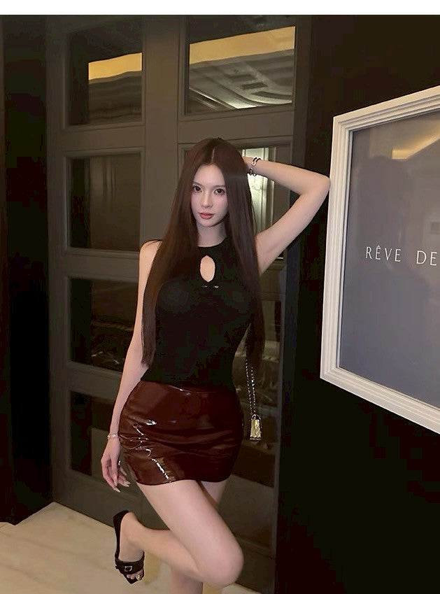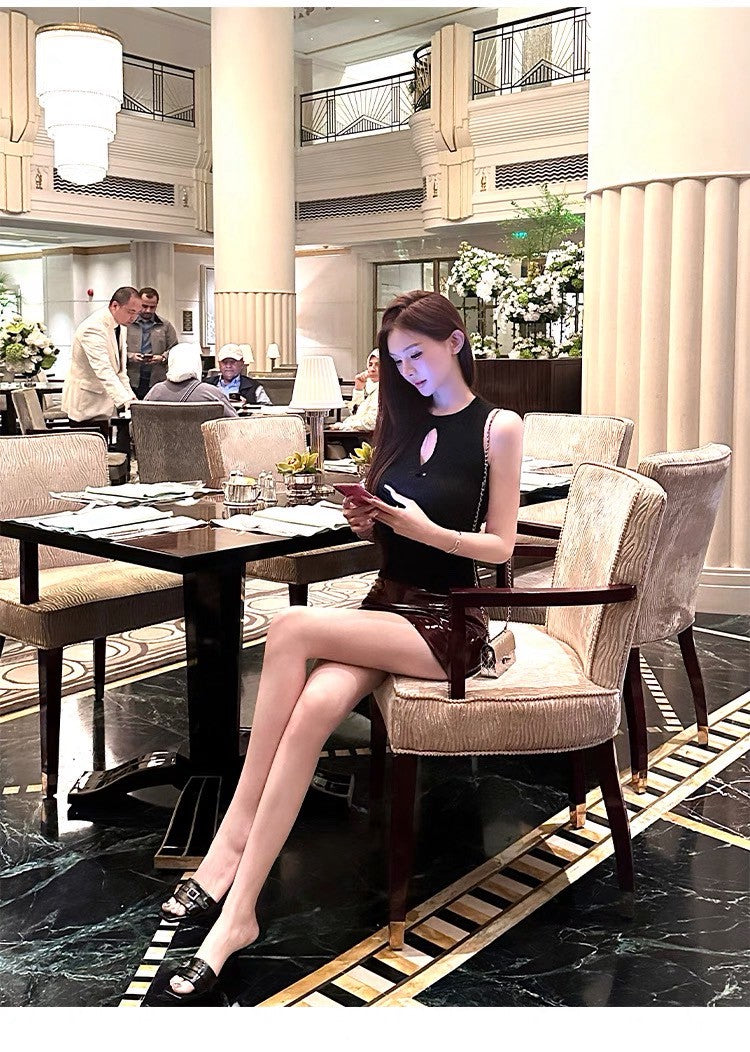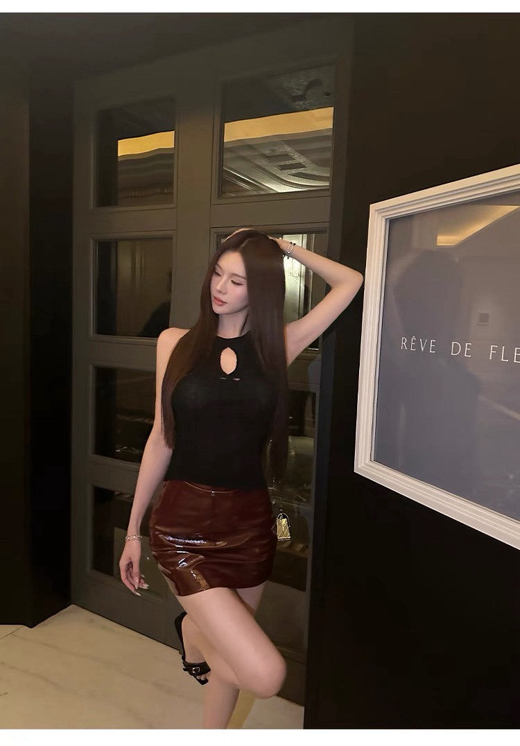 25Jul. 純欲靶心 修身縷空性感針織背心 黑