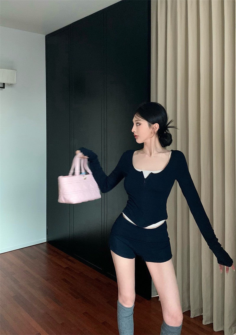 25Jul. 辣妹瑜伽 休閒拉鏈運動服套裝 藏藍