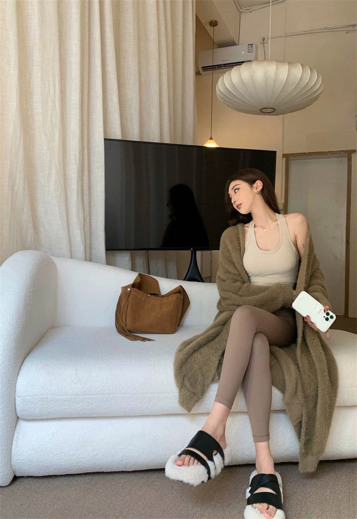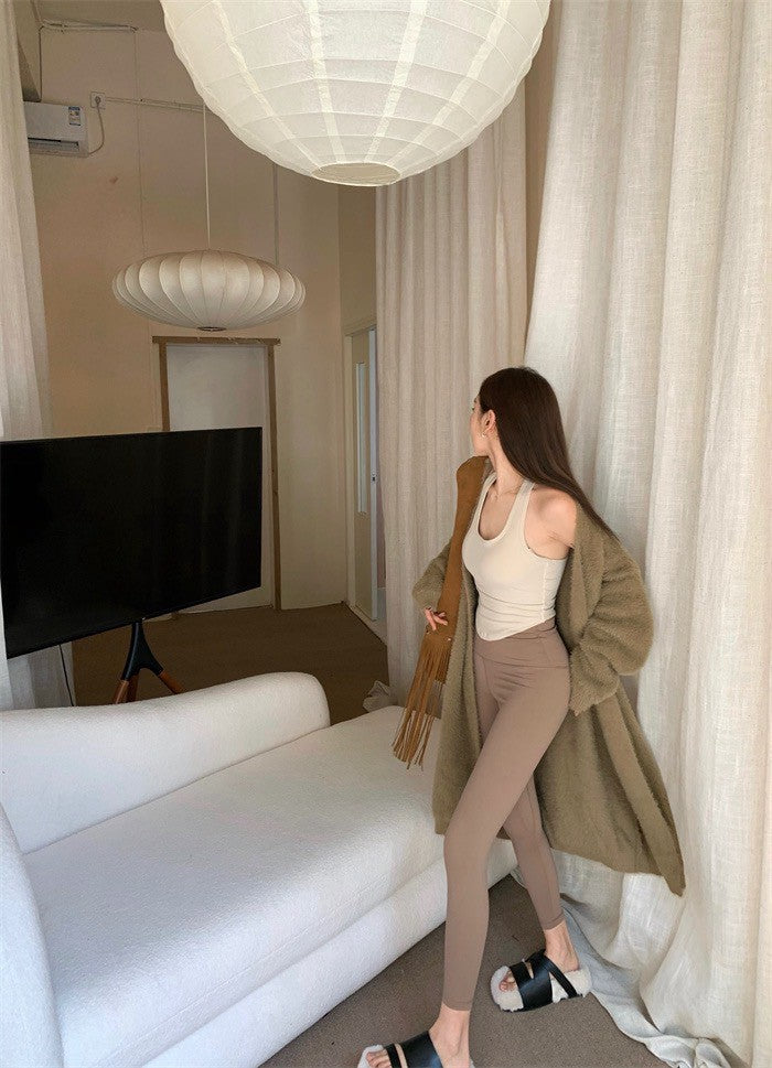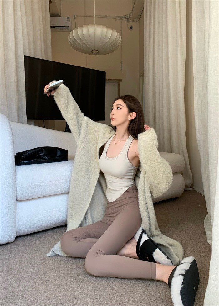 25Jul. 運動休閒氣質棉背心 毛毛開衫 卡其色瑜伽褲