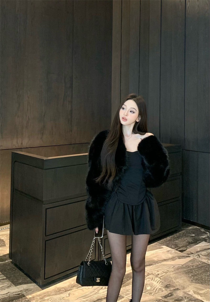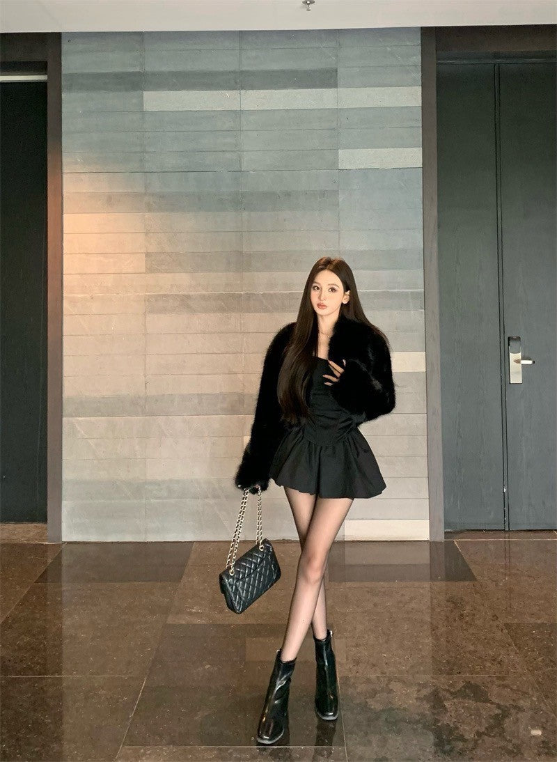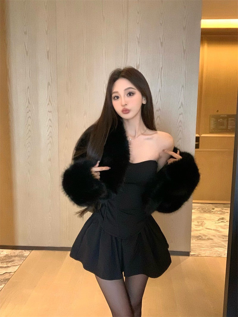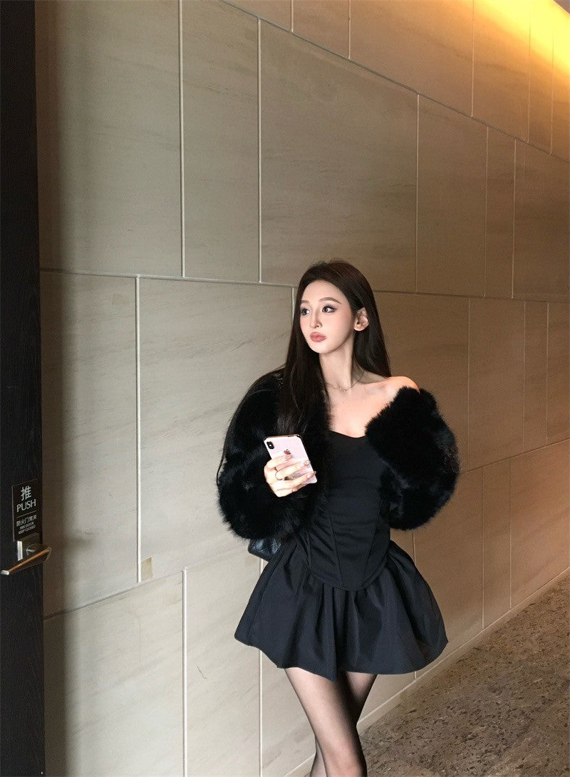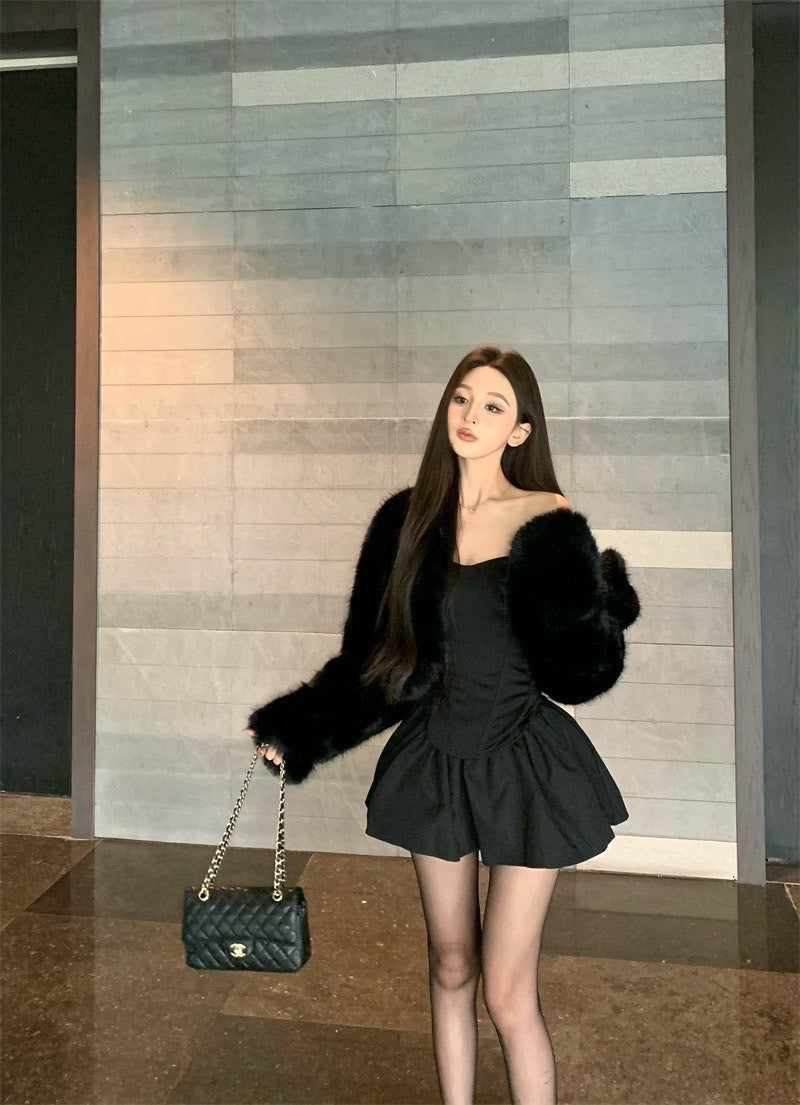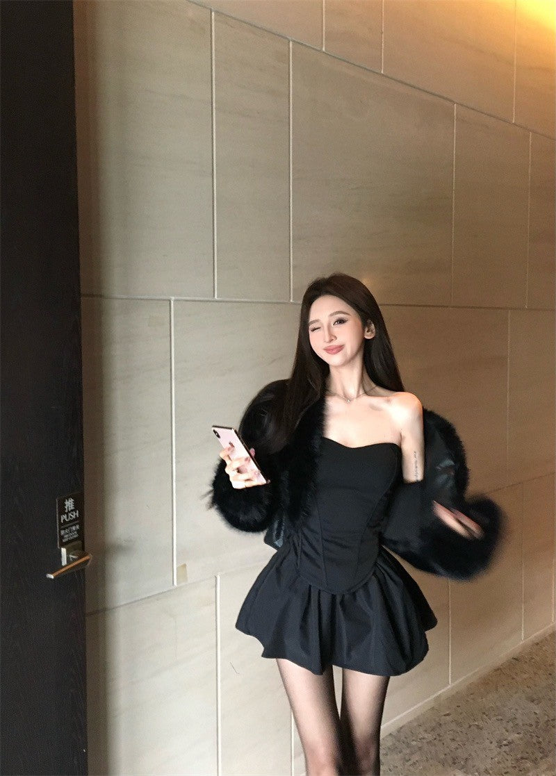 25Jul. 高冷御姐 黑色魚骨抹胸 花苞半身裙 黑