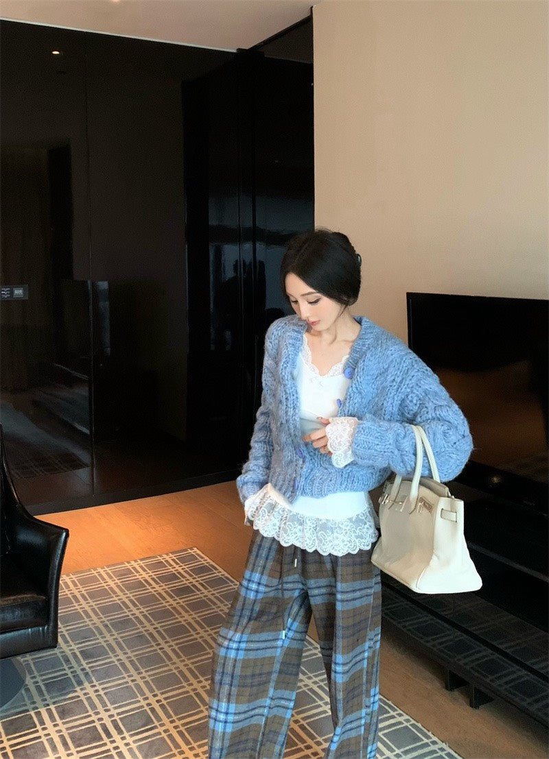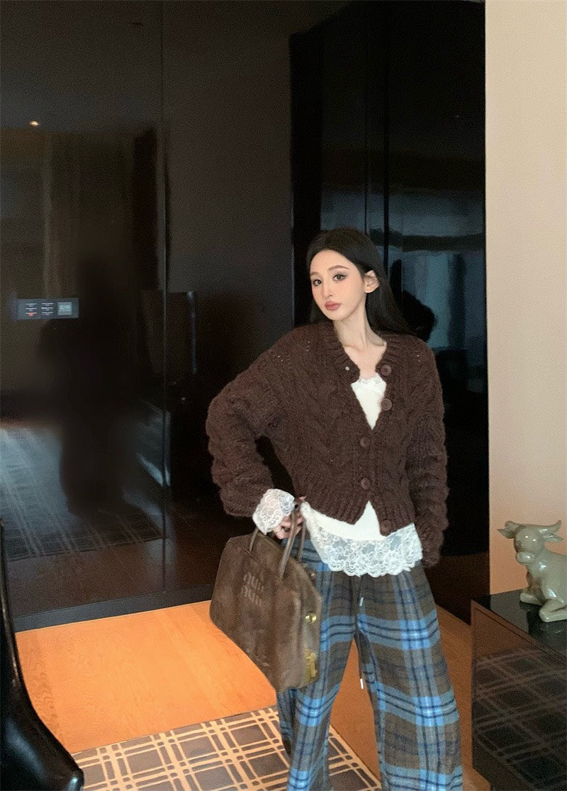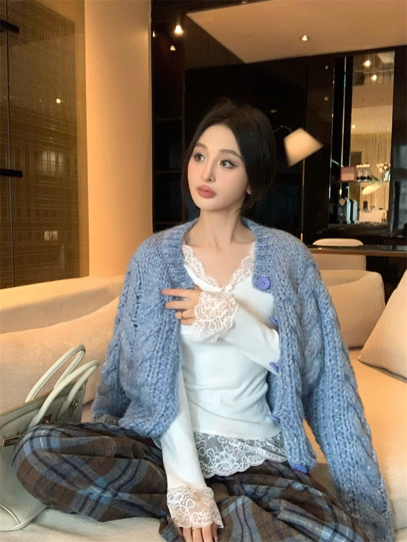 25Nov. 冬季呢喃保暖厚磅麻花針織外套2色 打底蕾絲上衣 2色