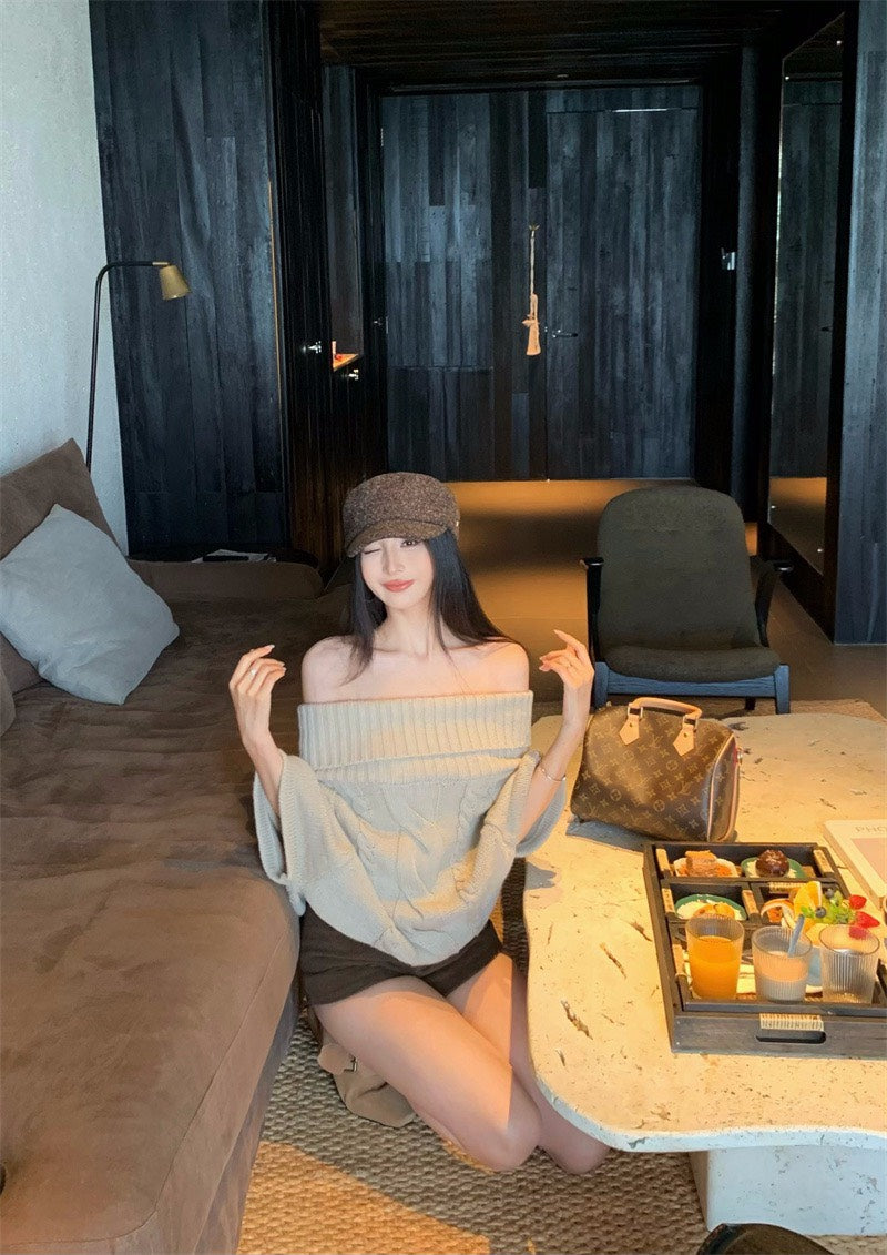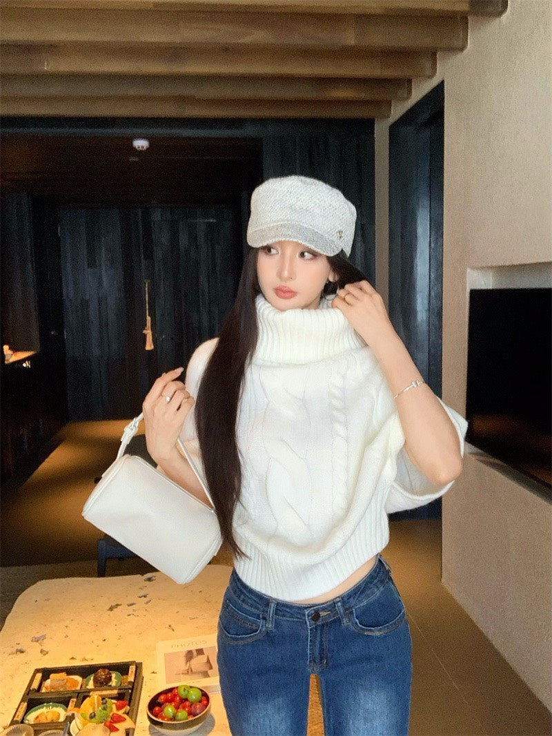 25Nov. 加厚溫柔韓系兩穿麻花針織上衣 米白/卡色