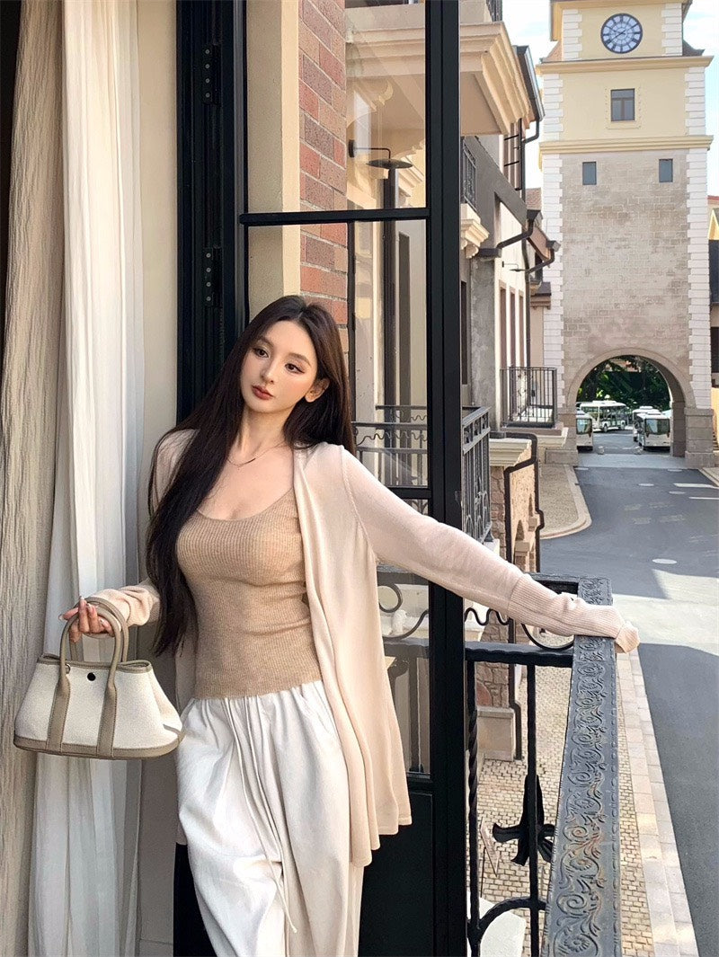25Nov. 慵懶掛溫柔開衫 針織背心/亞麻色系休閒褲