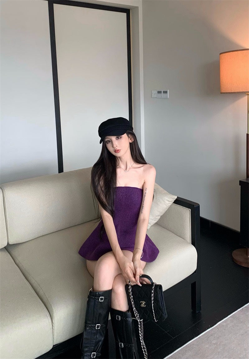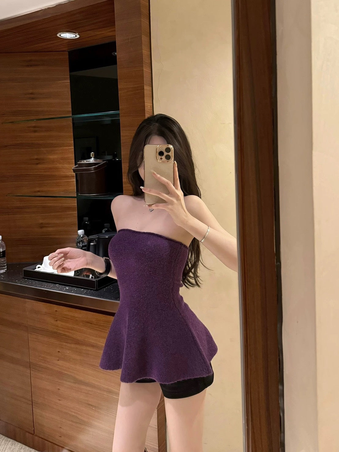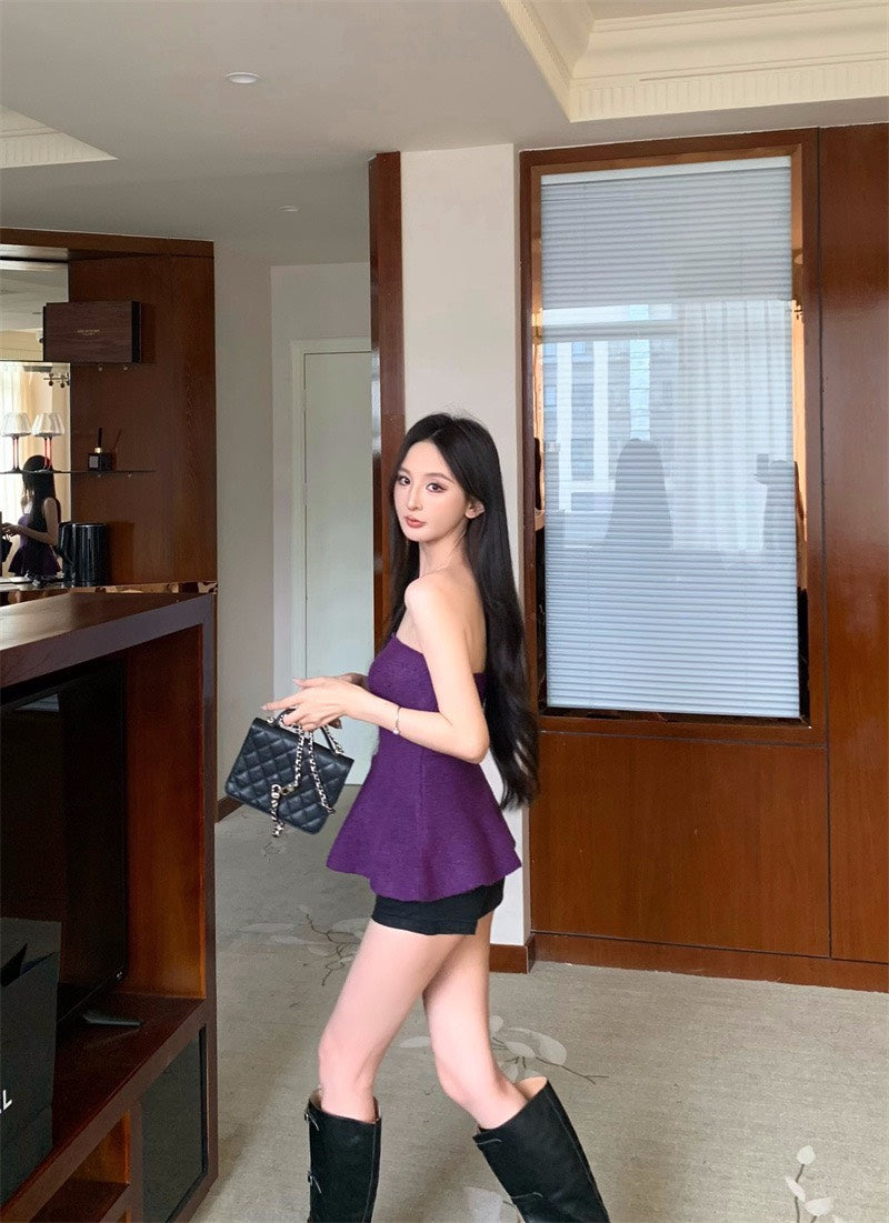 25Nov. 曲線奧斯氣質針織花瓣抹胸 紫