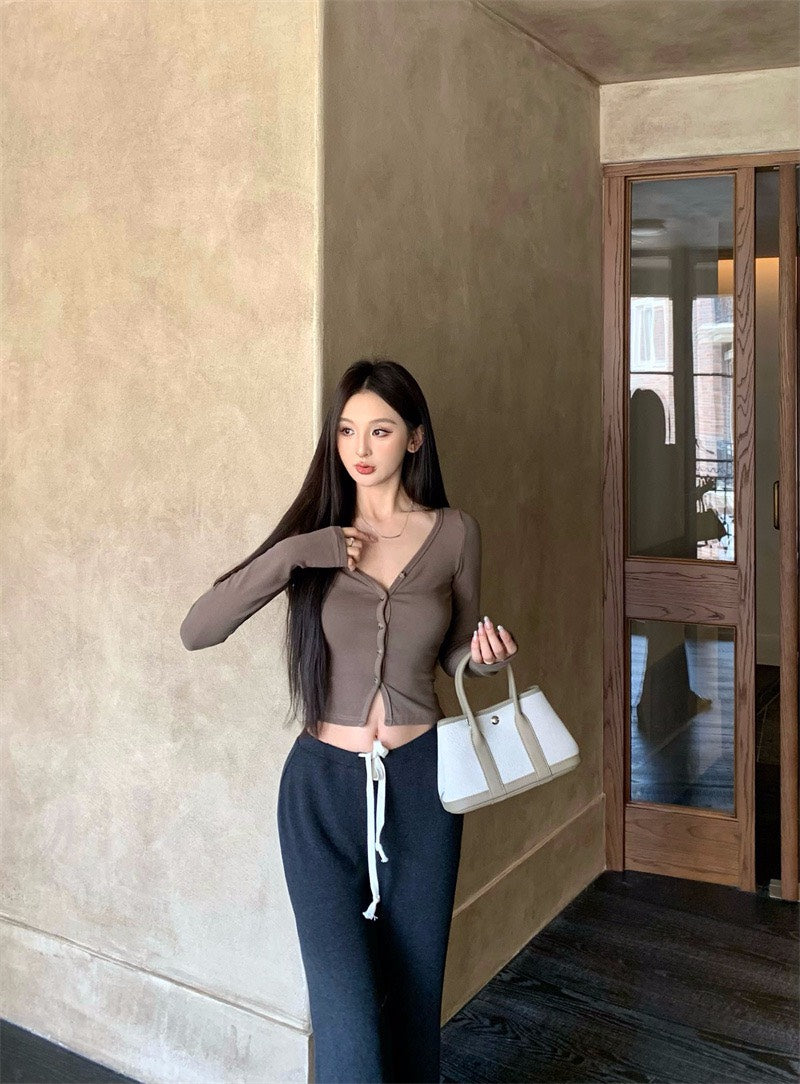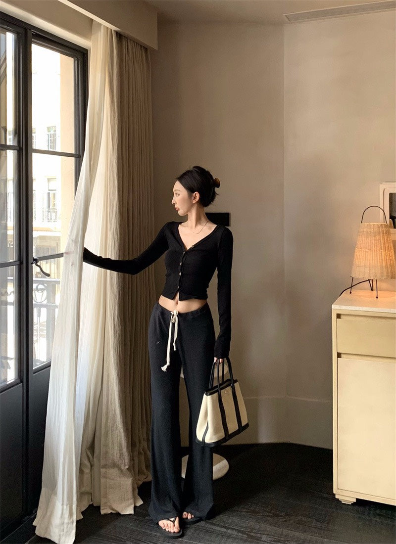 25Nov. 氣質溫柔休閒抽繩休閒褲 排扣修身上衣2色